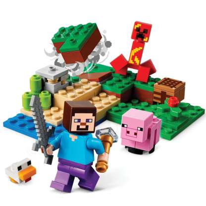 - Popular characters – Includes iconic Minecraft® hero Steve, plus a baby pig, baby chicken and a red Exploding Creeper™