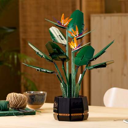- Use the repositionable flowers and leaves to style the Bird of Paradise model and create your own display piece, presented in a black LEGO® flowerpot.