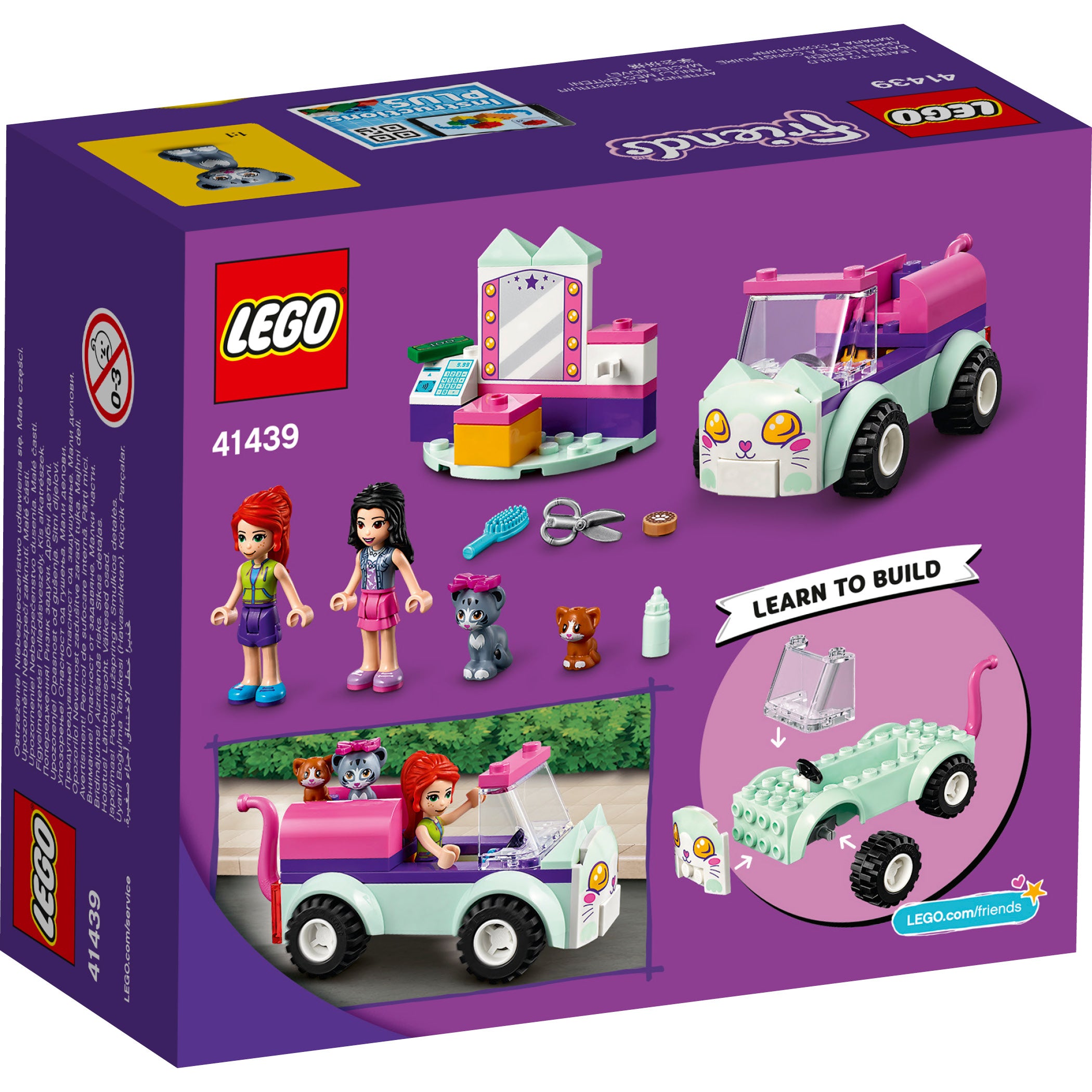Help youngsters develop building skills while caring for animals with the Cat Grooming Car (41439). With this simple set, kids can join LEGO® Friends Emma and Mia as they pick up cats in need of a trim in their toy vehicle and take them back to their salon for a pamper session.