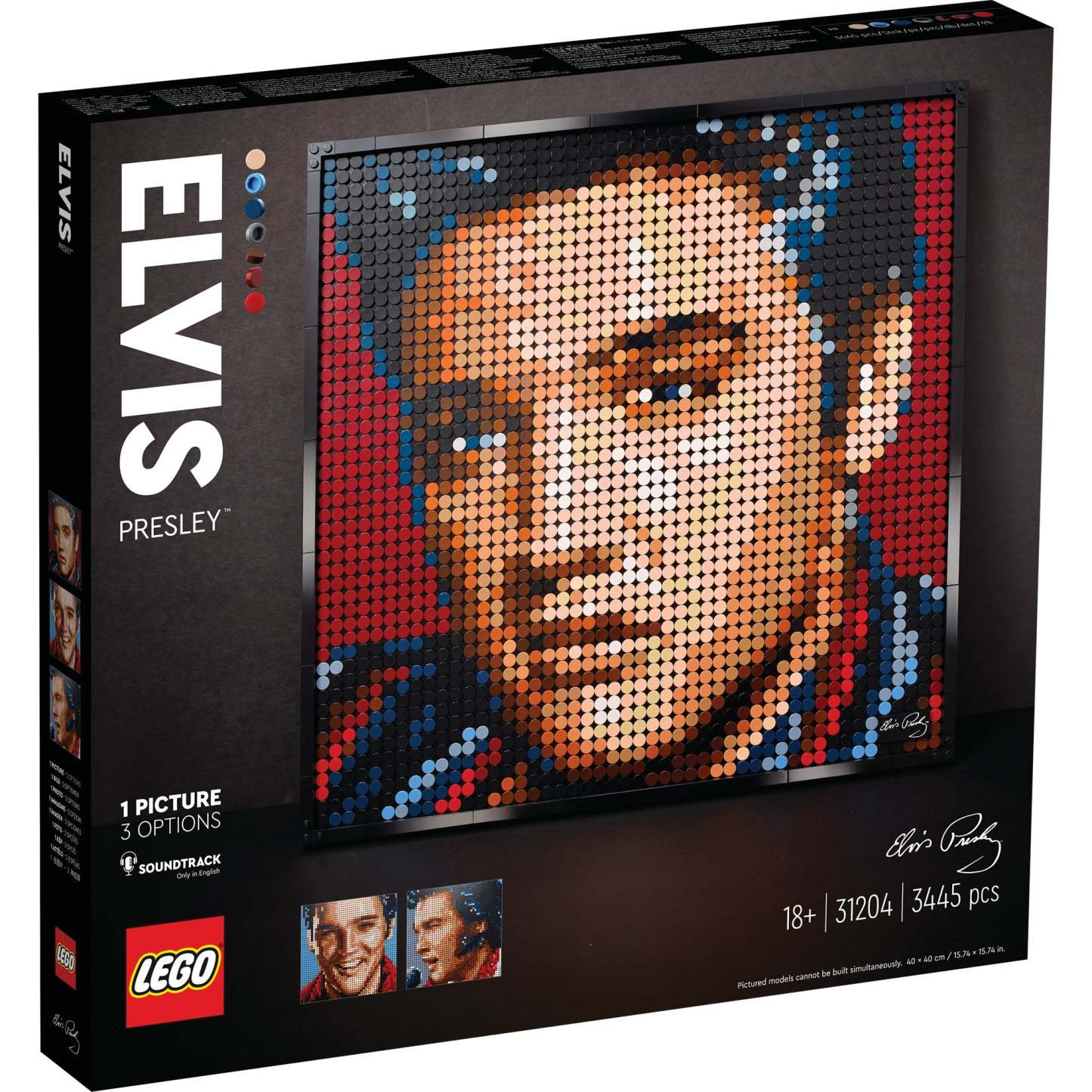 - Choose from 3 designs – Explore the different faces of an icon as you build this LEGO® Art Elvis Presley “The King” (31204) wall art set, featuring a portrait kit with 3 build options