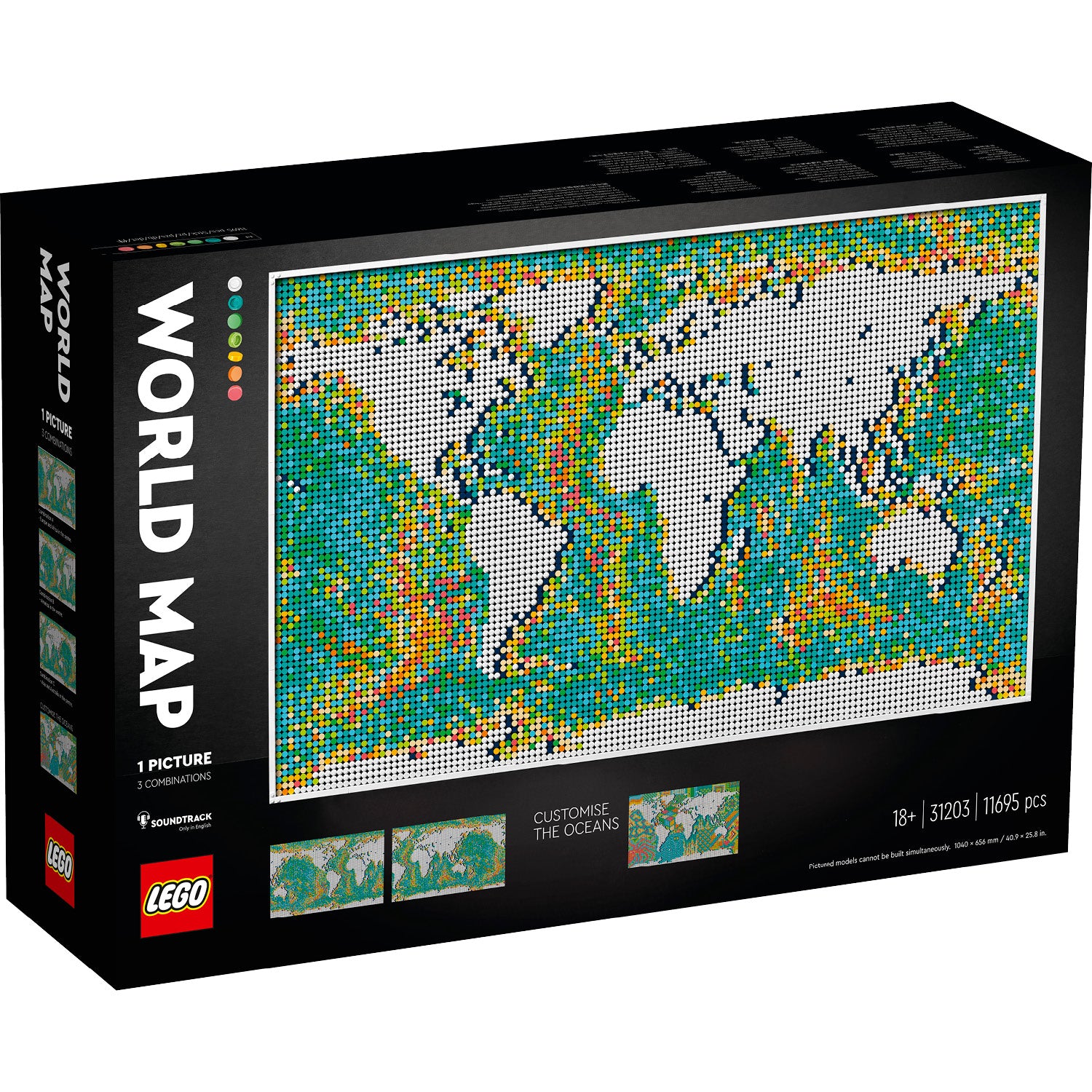 - Build the world your way with this stunning LEGO® Art World Map (31203) set, which gives you 1 of 3 unique combinations of a world map to build, plus a fully customizable, open-build experience.