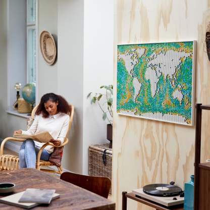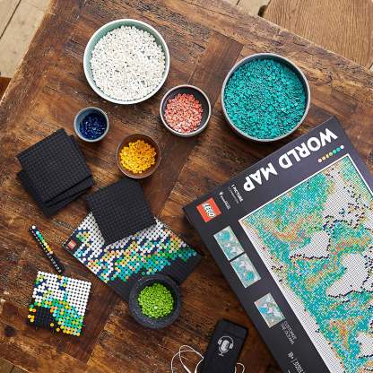 This kit immerses you in your passion for travel and DIY creativity while you relax and recharge. With the included soundtrack, you can enjoy an audio world tour as you build. Build and display this unique, ocean depths-inspired world map that’s full of lush, vibrant colours you can use for the background. To extend the joy, rebuild the map to reflect your own world view. This piece measures over 25.5 in. (65 cm) high and 40.5 in. (104 cm) wide, and offers a challenging activity for you or other map enthusiasts in your life who love DIY projects. Unboxing the set offers you a unique ‘wow’ experience, while the coffee-table-quality instructions provide an informative and stress-relieving road map as they guide you through the build. Perfect collectible for adults to display on a wall or shelf, LEGO® Art kits offer you a rewarding building experience as you find new ways to express your passion for travel and self-discovery. LEGO® components meet stringent industry standards to ensure they are consistent, compatible and connect and pull apart reliably every time – it’s been that way since 1958. LEGO® components are dropped, squashed, twisted, heated, bent, scratched and stretched to ensure this World Map wall decor piece meets stringent global safety standards.
