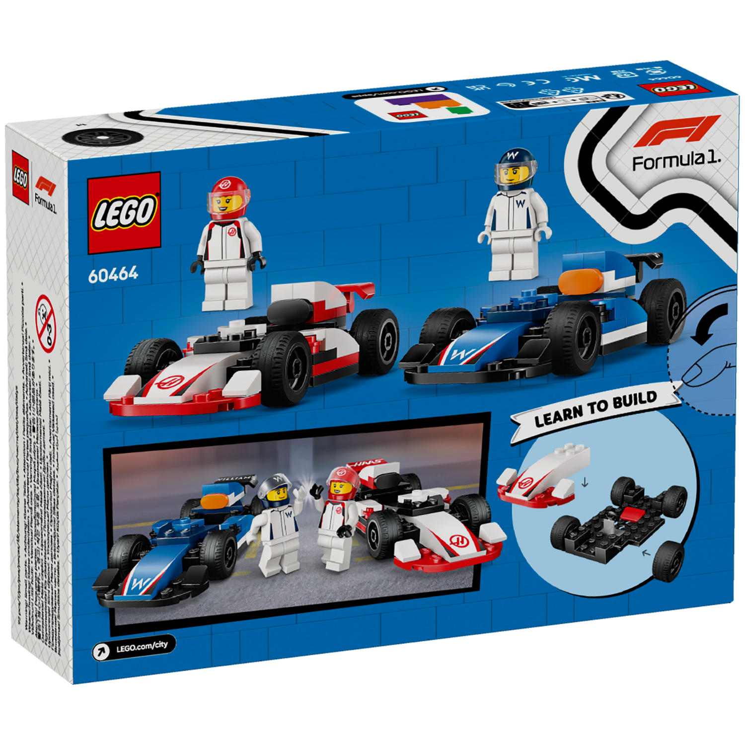 - What’s in the box? – Includes everything kids need to build 2 toy Formula 1® race car toys with Williams Racing and Haas driver minifigures