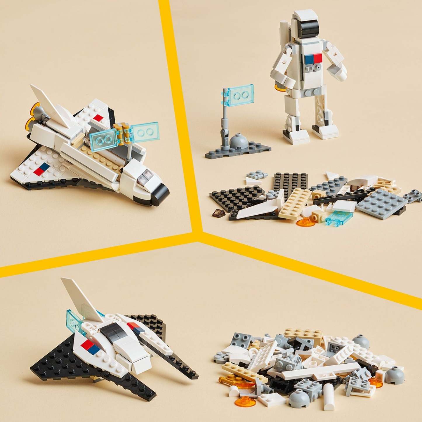 - 3in1 toy – Fans of space play can enjoy intergalactic action with the LEGO® Creator 3in1 Space Shuttle (31134) playset, featuring a Space Shuttle, a posable astronaut and a spaceship