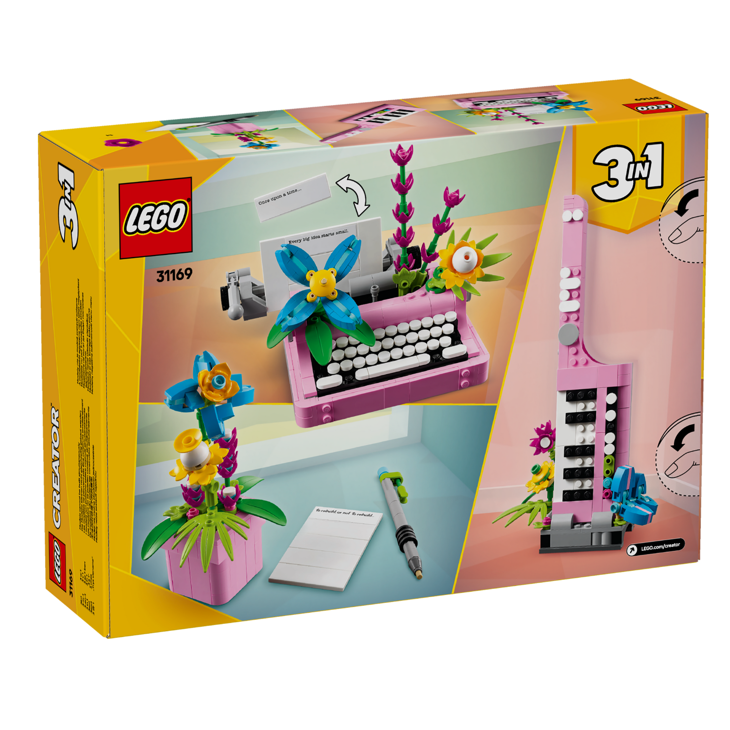 Treat young fans of flowers and art and design with this LEGO® Creator 3in1 Typewriter with Flowers (31169) toy playset. This mini typewriter toy for girls and boys aged 8 and up is decorated with 4 colorful brick-built flowers and features a moving keyboard and platen and a brick-built sheet of paper.