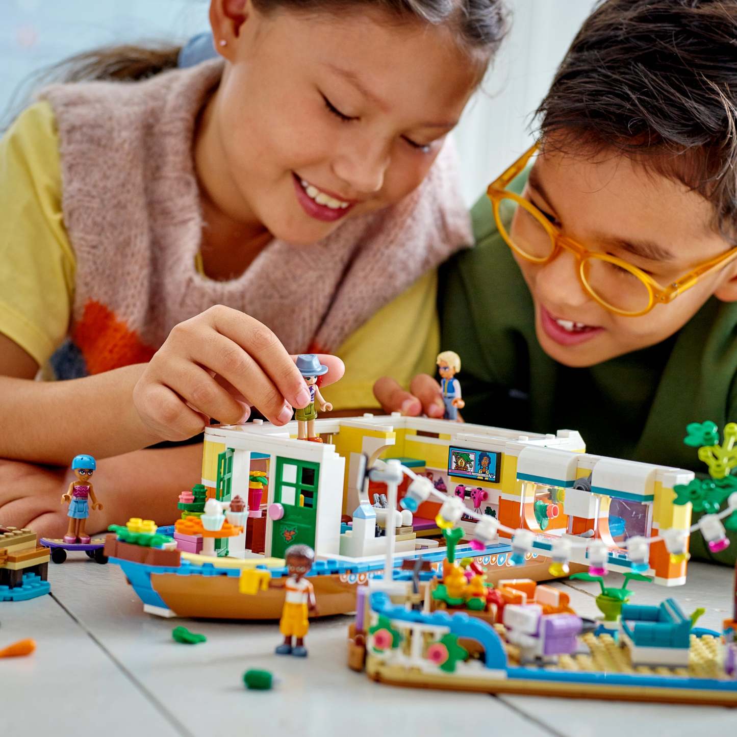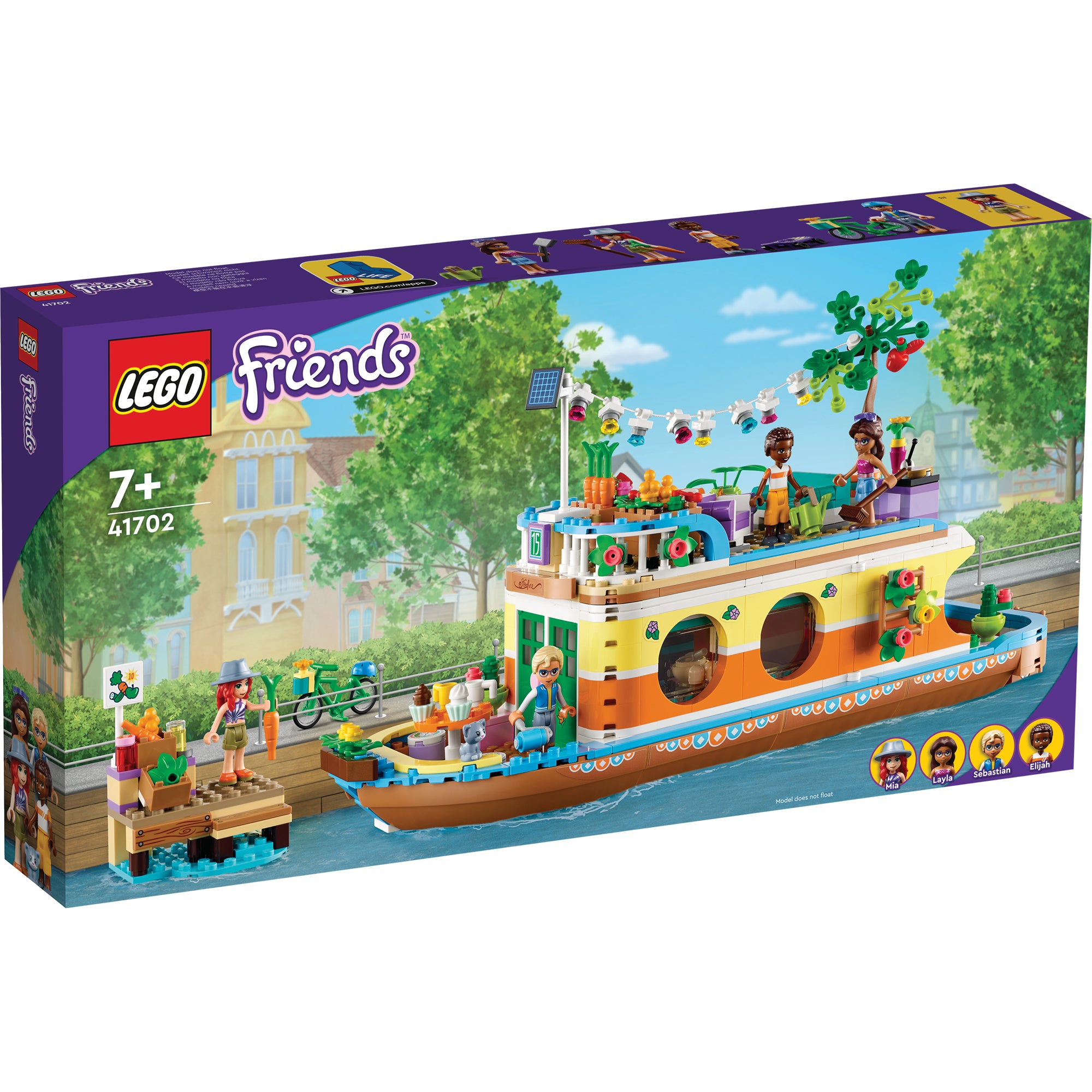 - Retro-styled eco-houseboat model – Let kids live out an environmentally friendly lifestyle aboard the LEGO® Friends Canal Houseboat (41702), which comes with a deck-top market garden