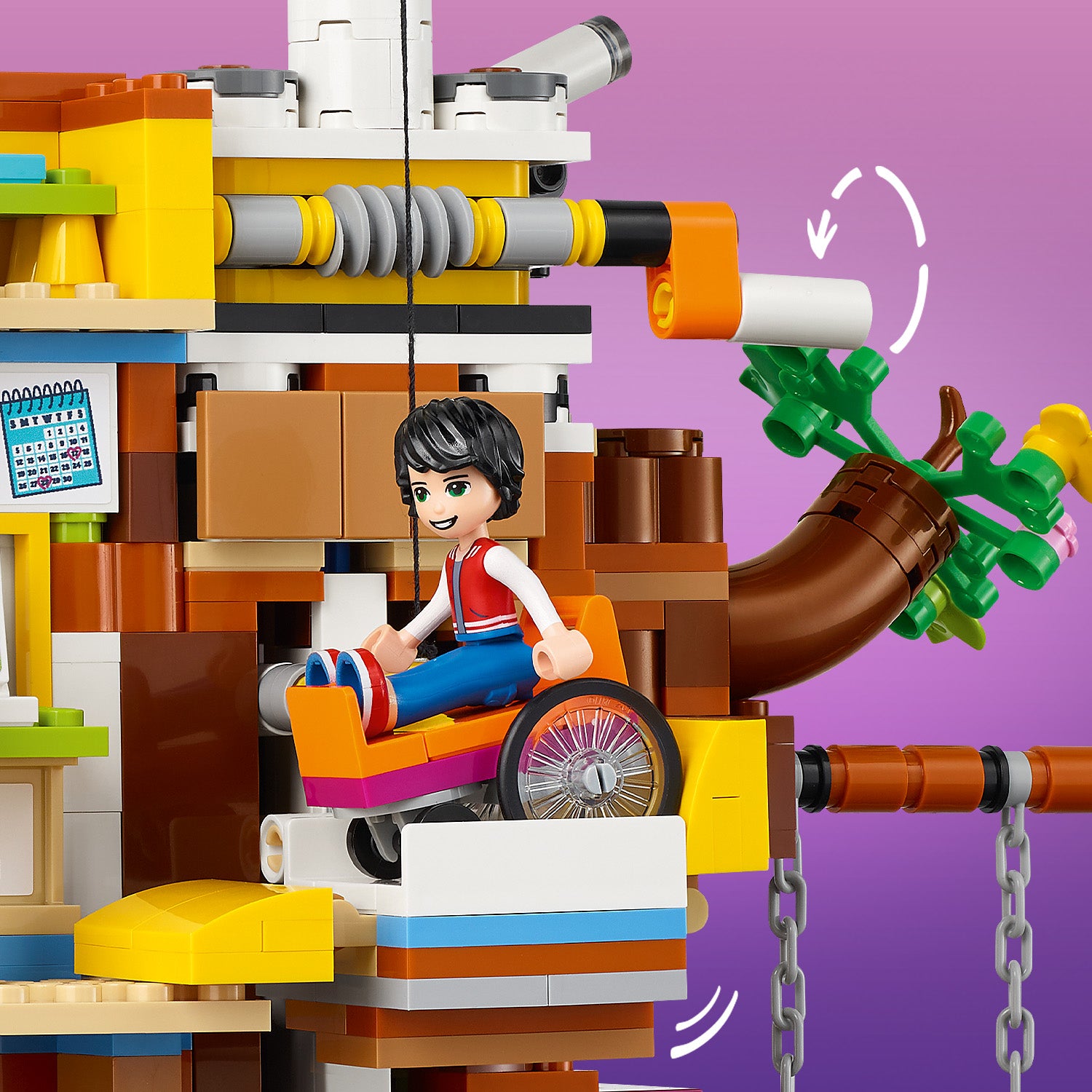 This set has lots of intricate details for limitless imaginative play. Kids collect honey from the beehive, make bird boxes with the carpentry vice, spin the wind turbine to lift the elevator or play on the giant slide and swing. There are also hidden details to discover. In celebration of the 10-year anniversary of LEGO Friends, this set has a QR code which reveals the retro Heartlake City treasures hidden within it.
