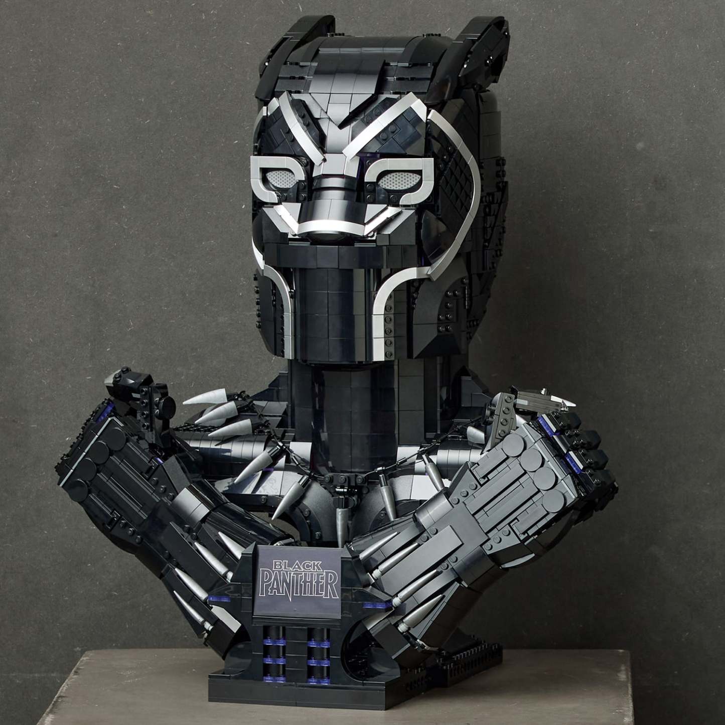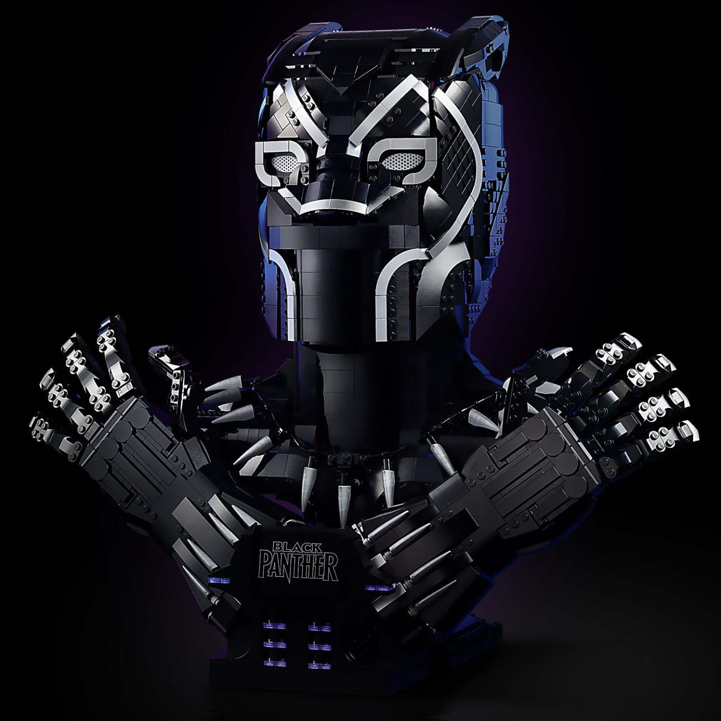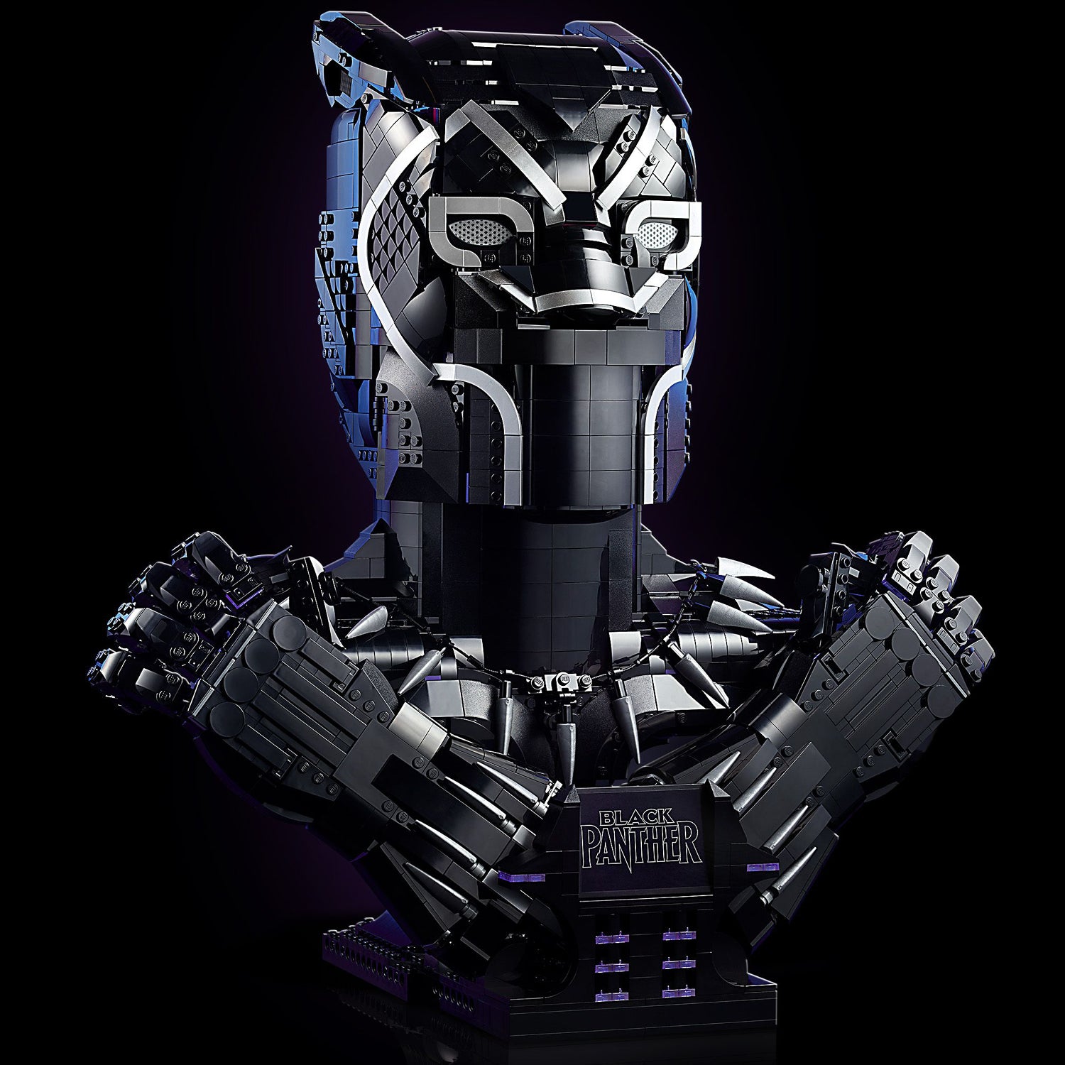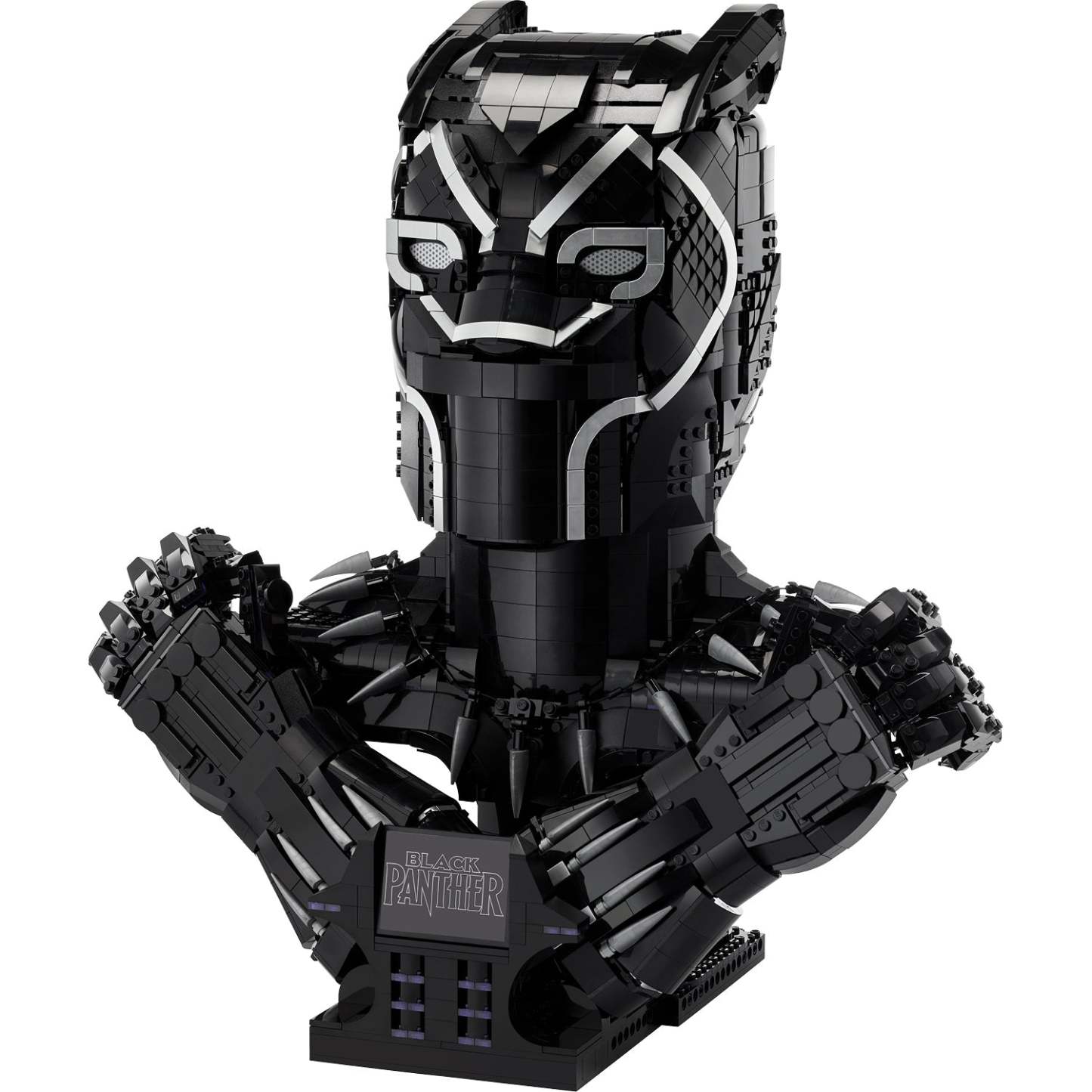 This detailed recreation features the almost life-size head, chest and hands of Black Panther, posed in the iconic Wakanda Forever salute. Both hands feature articulated fingers and detach from the main model to increase display possibilities. A sturdy display base with an attached logo plate completes this lasting reminder of an epic legend. With 2,961 pieces, this challenging and rewarding model is sure to provide great pleasure and satisfaction long after the construction has been completed.