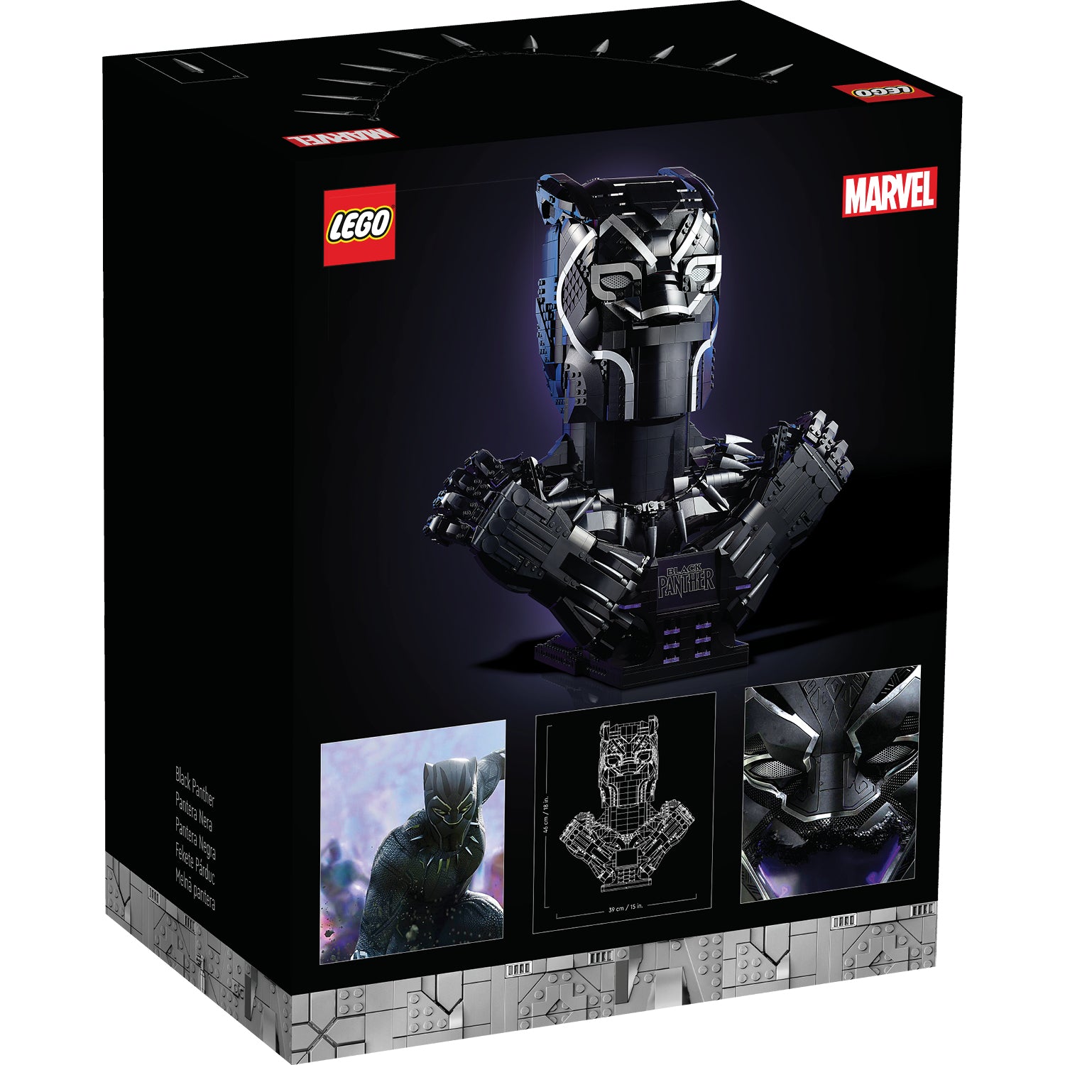 - Black Panther display piece – Celebrate Marvel Studios’ Infinity Saga with this almost life-size LEGO® Marvel Black Panther (76215) build-and-display model for adults
