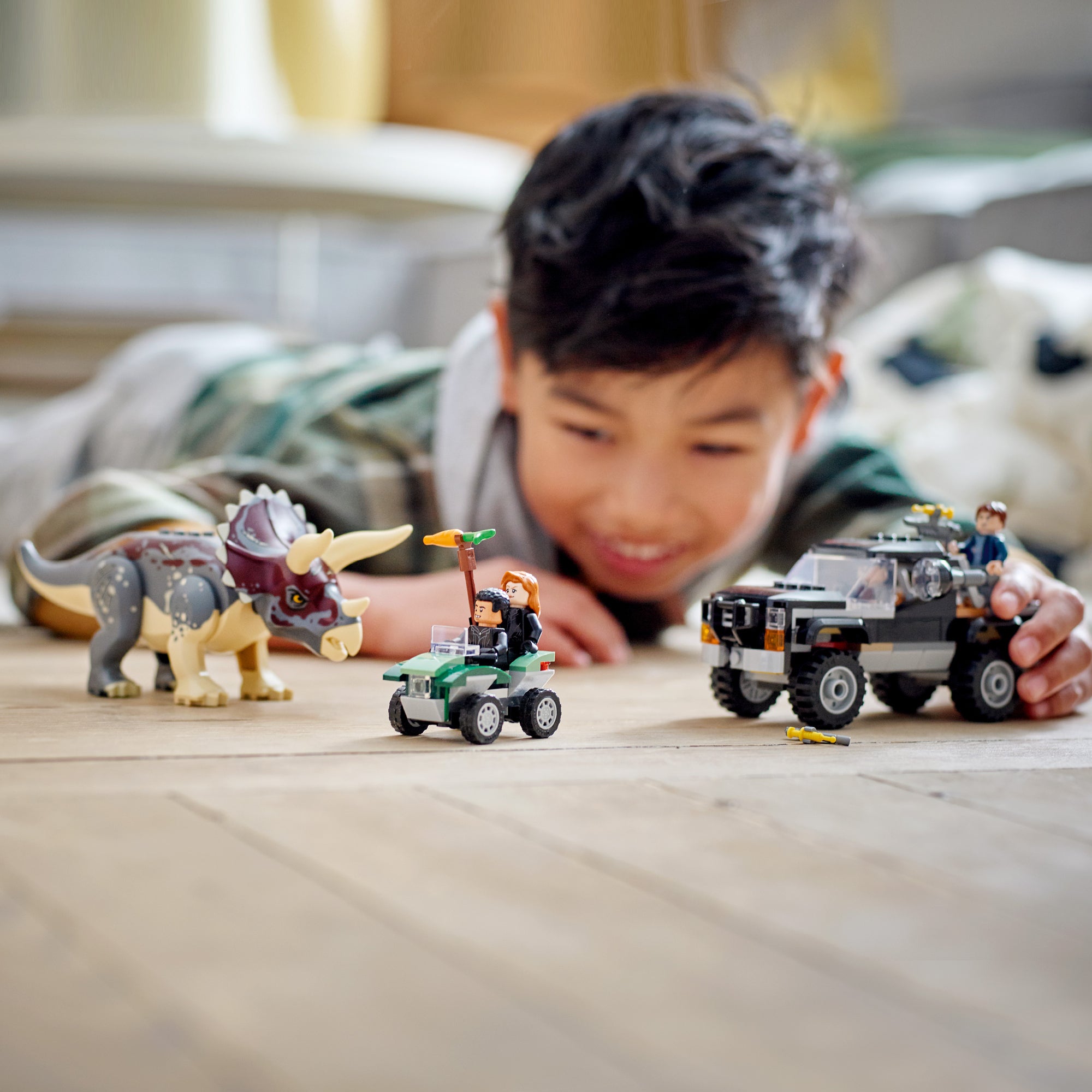 - Buildable playset for children who love dinosaurs and toy vehicles – Kids can relive epic Jurassic World: Dominion action with this Triceratops Dinosaur Pickup Truck Ambush (76950) set