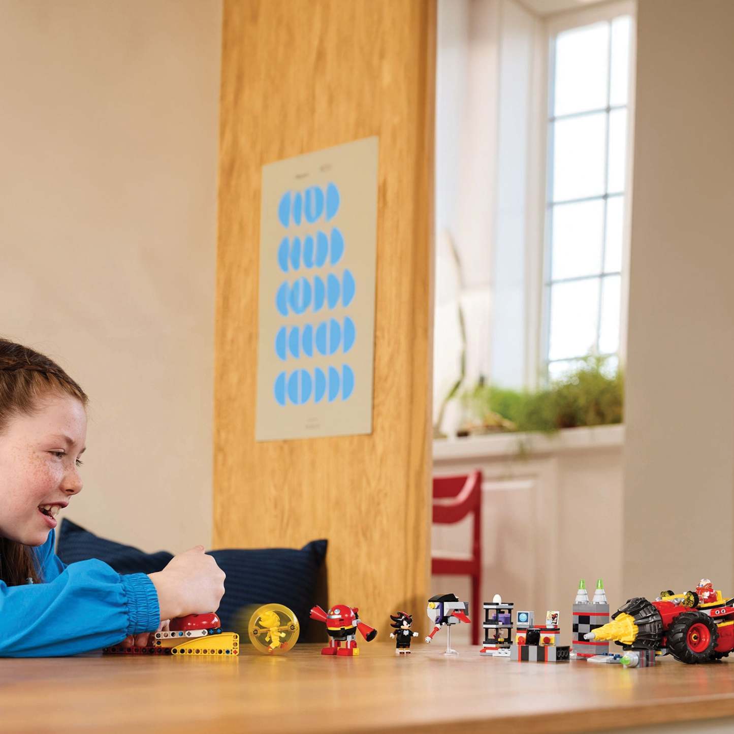 - Collectible video game set – Features an Egg Drillster toy vehicle with a dock for a detachable hover vehicle, a speed sphere launcher, lab with breaking wall, 3 minifigures, 4 characters and more
