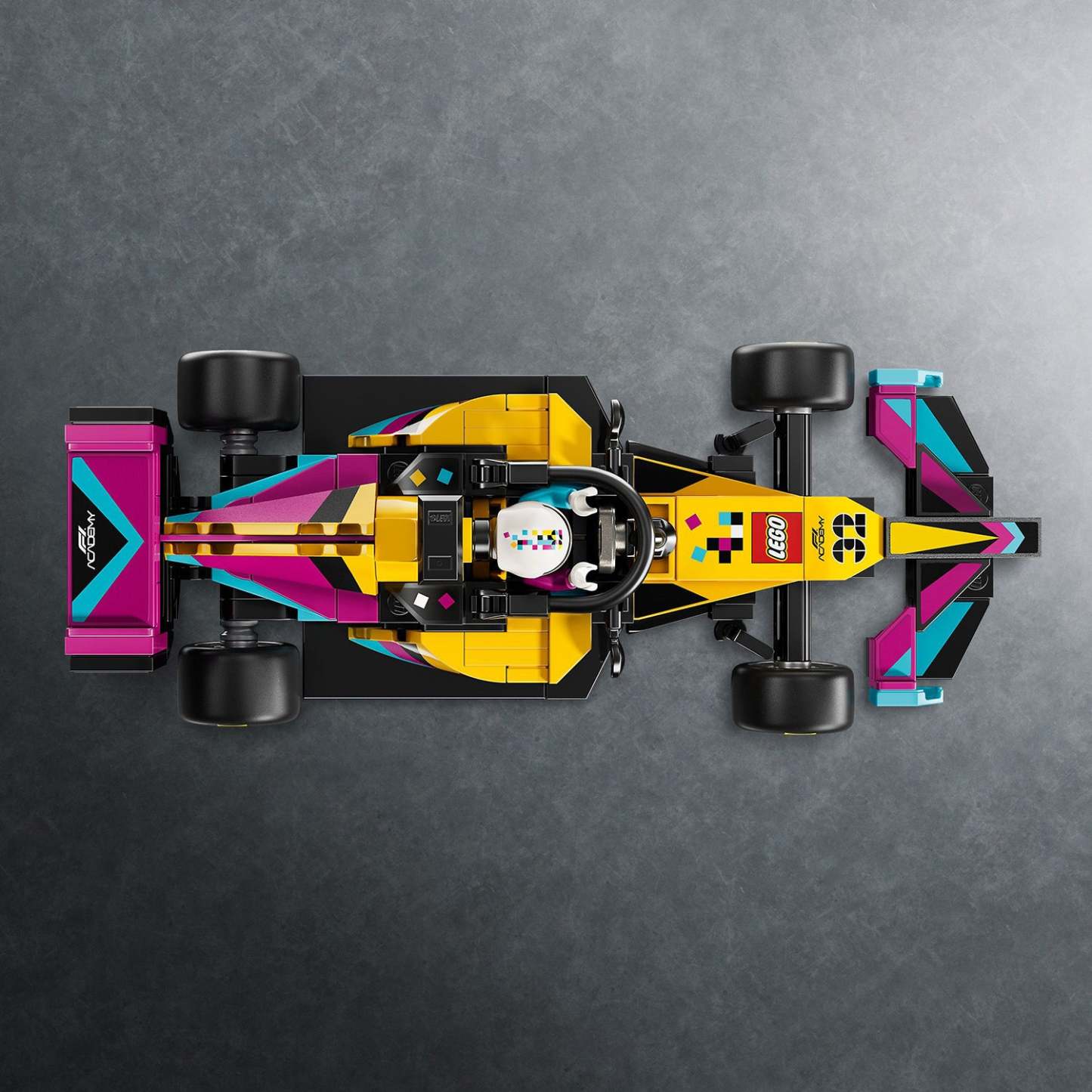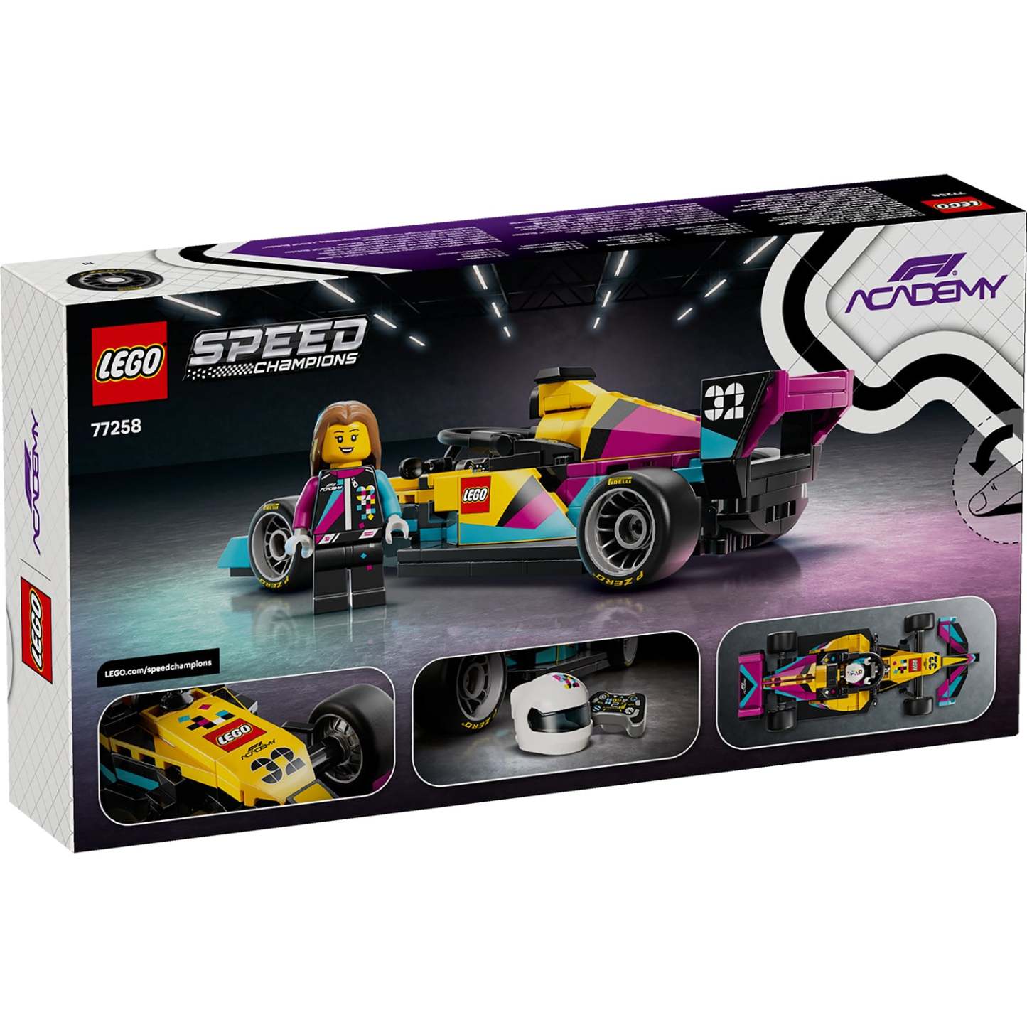 - F1 ACADEMY™ MINIFIGURE – LEGO® Speed Champions F1 ACADEMY LEGO® Race Car (77258) building set includes 1 female F1 ACADEMY minifigure with a helmet, wig and wrench, to place inside the cockpit