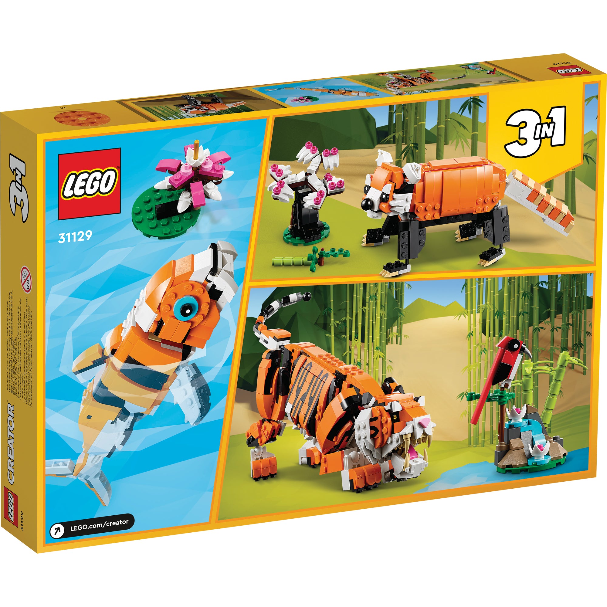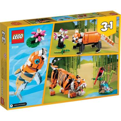 - 3 animal models in 1 set – LEGO® fans can enjoy endless adventures with the Majestic Tiger (31129) building set featuring tiger toy, red panda and koi fish models