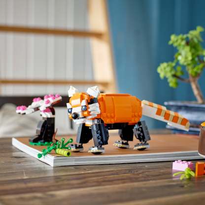 At least 3 different build-and-play experiences are available to kids with this fantastic 3in1 toy set. They can build a posable tiger with a red bird, rebuild it into a posable red panda with bamboo and a bonsai tree, turn it into a koi fish with moving tail and flippers and water lilies, or delve into their imaginations to create another animal..