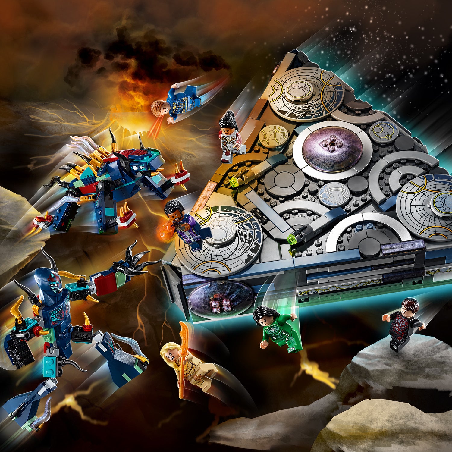 - Kids use their superhero skills in the final battle between the Eternals and the Deviants. The Eternals’ spaceship, with its detailed interior, ensures the imaginative play will be out of this world!