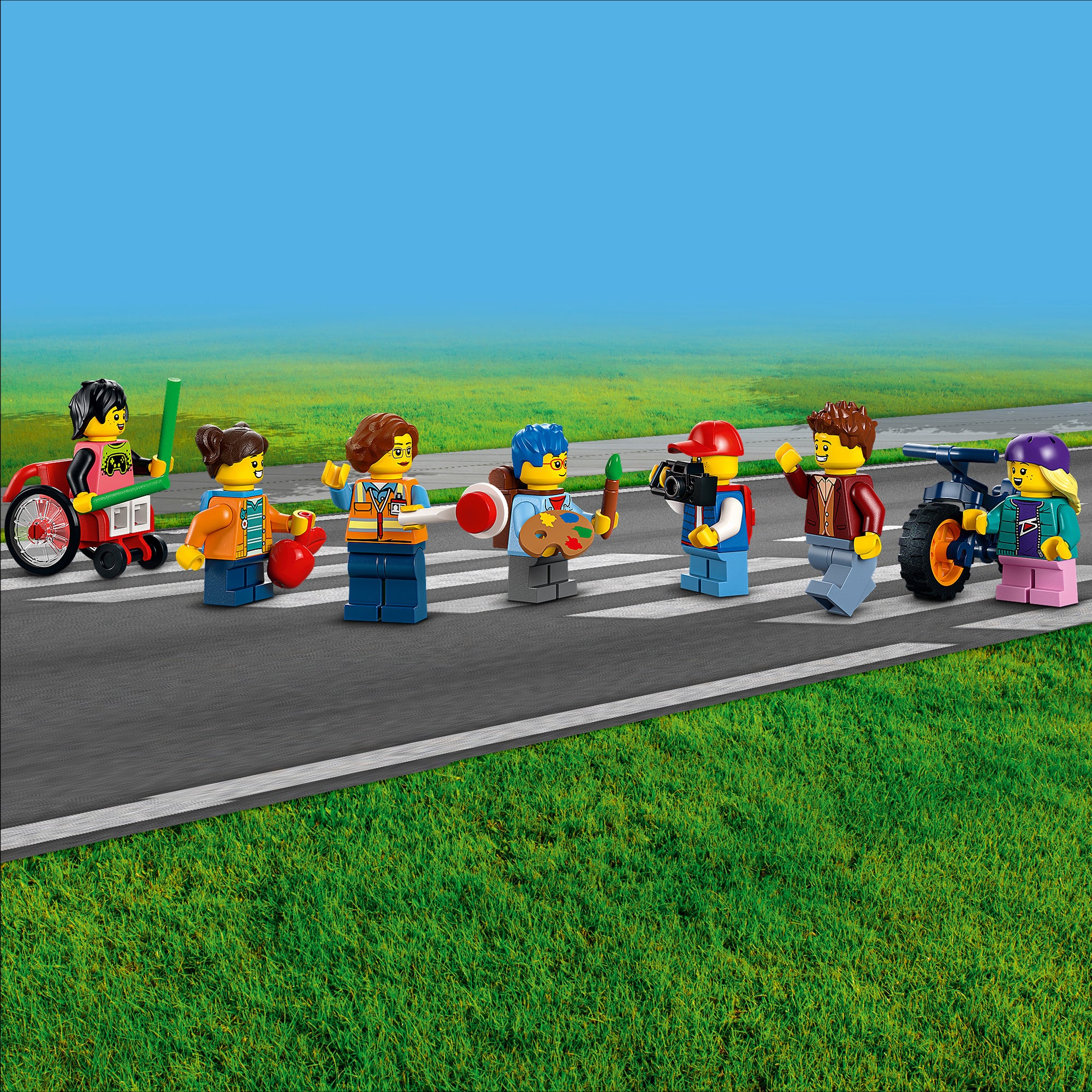 - What’s in the box? – All kids need to build a 2-level school building with schoolyard, toy school bus, bus stop, bike and 7 minifigures, including 2 LEGO® City TV characters, plus a squirrel figure