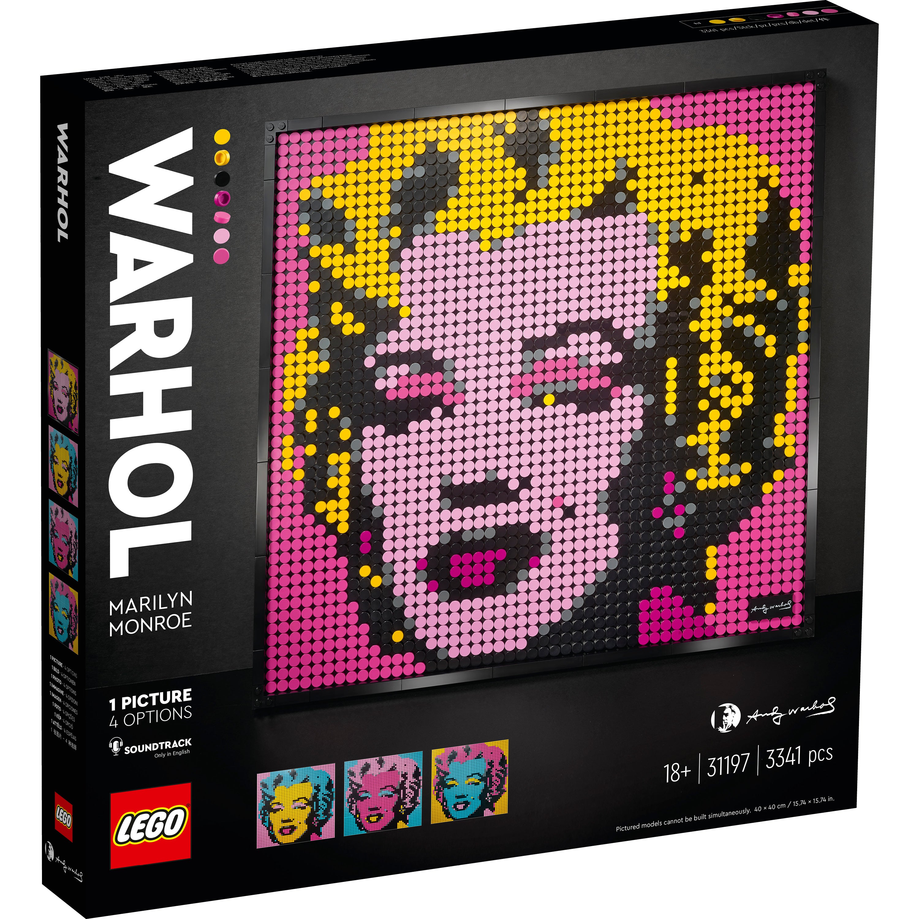 - You can create this special LEGO® Art Andy Warhol’s Marilyn Monroe (31197) set, featuring an iconic art piece with 4 unique build options. Display the finished work on your wall after spending quality time building it.