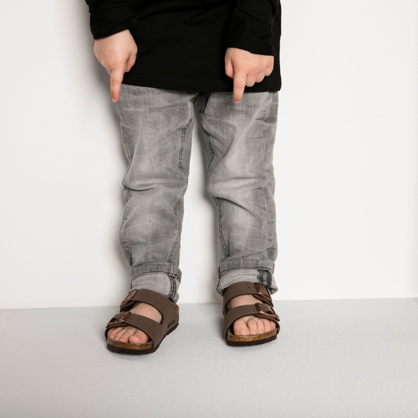 The all-time icon, sized down just for kids. Durable and easy to clean, Birkibuc® gives the two-strap look a brushed, leather-like finish. Complete with classic BIRKENSTOCK design elements, like adjustable buckles and a contoured cork-latex footbed to keep little feet comfortably on the move.n