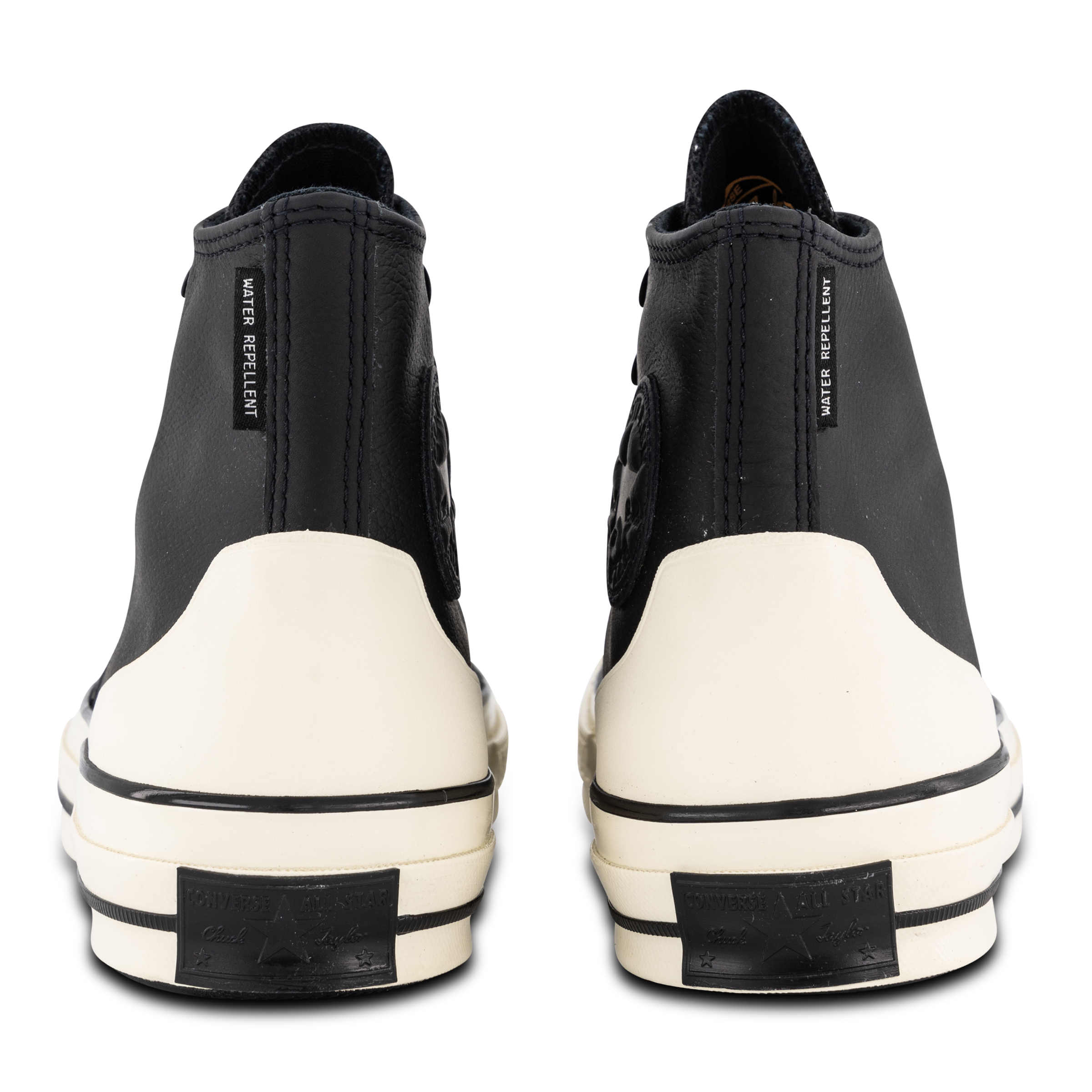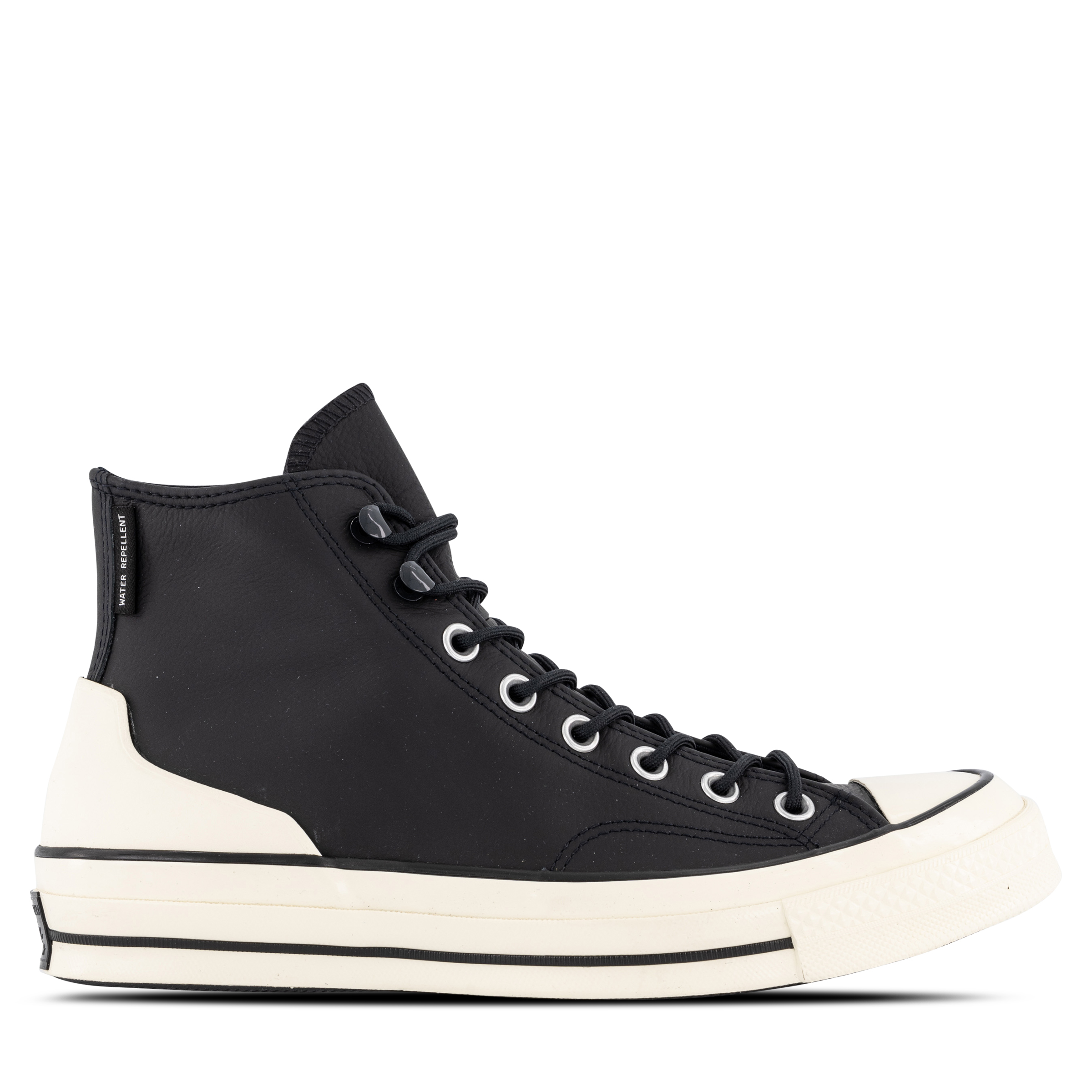 Bring on the rain. Iconic style with an explorative feel, the Chuck 70 Counter Climate High Top brings outdoor ideals to the original '70s design. The Counter Climate style features a water-repellent leather upper with durable, non-wicking nubuck leather overlays. A waterproof lining and non-wicking laces offer extra wet weather protection. Paired with colorblocked details and hiker-inspired speed hooks, it's a must-have for the season.High-top, premium shoe with water-repellent leather upperOrthoLite cushioning for all-day comfortIconic Chuck Taylor ankle patch