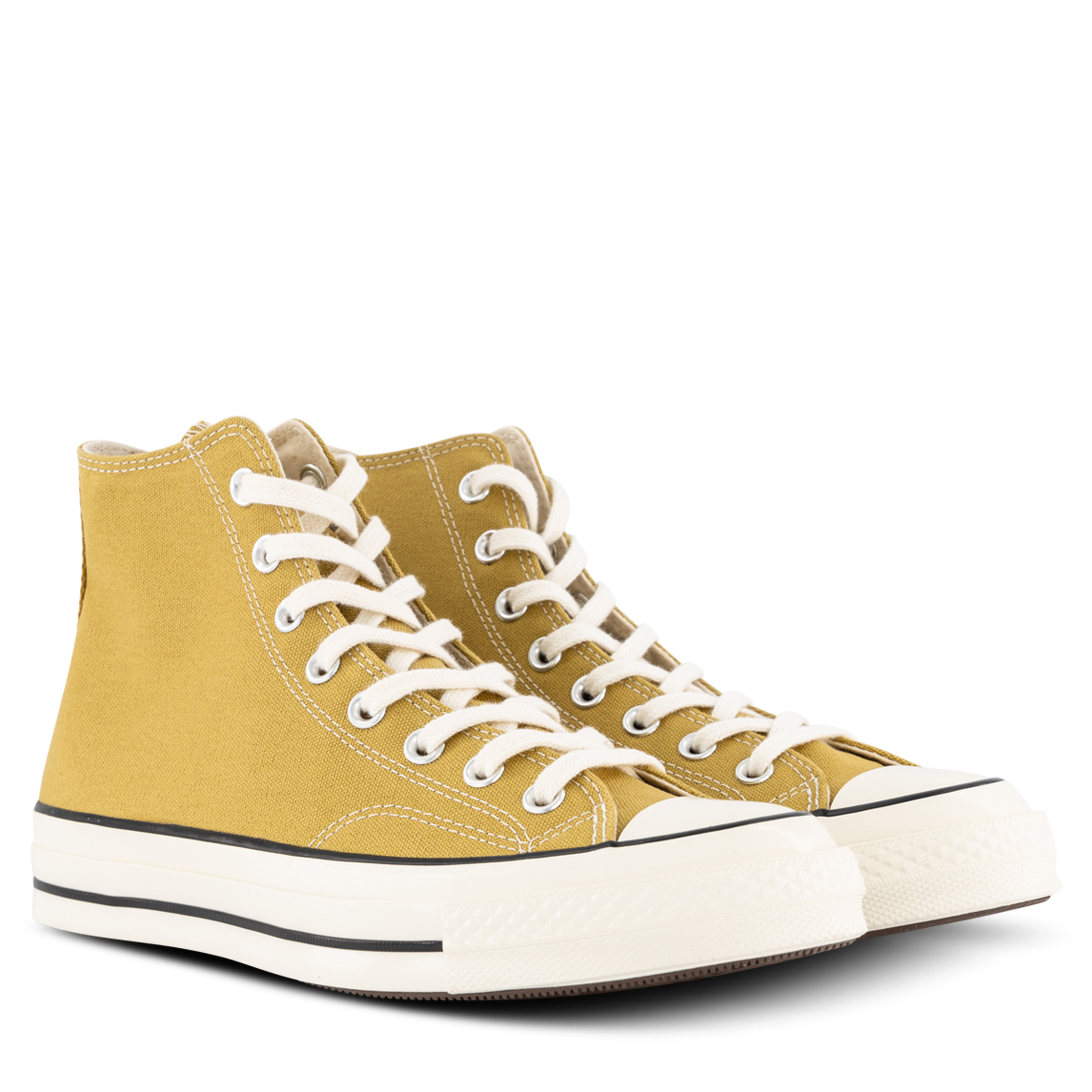 By 1970, the Chuck Taylor All Star evolved into one of the best basketball sneakers, ever. The Chuck 70 celebrates that heritage by bringing together archival-inspired details with modern comfort updates. Ortholite insole cushioning and winged tongue stitching takes the comfort level up a notch. A glossy, egret midsole and signature star ankle patch brings out the shoe's iconic, vintage style. Updated in archival color on premium canvas.High-top shoe with premium canvas upper in seasonal colorWinged tongue stitching helps lock it in placeVintage star ankle patch and license plateArchive-inspired, glossy egret midsoleOrtholite insole cushioning