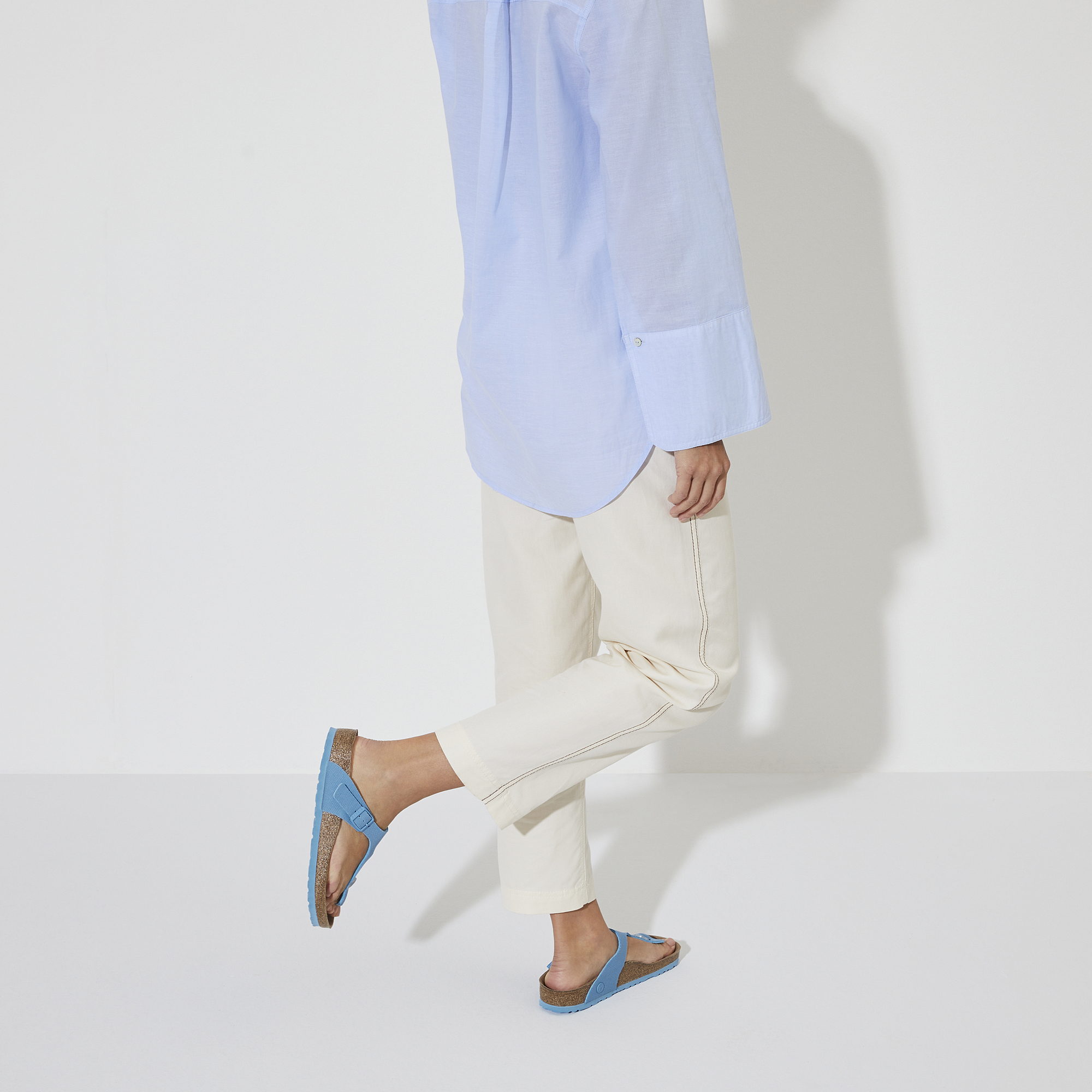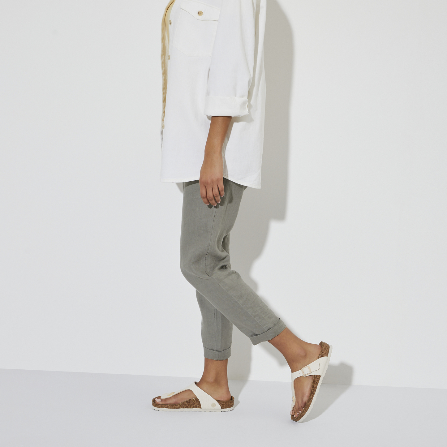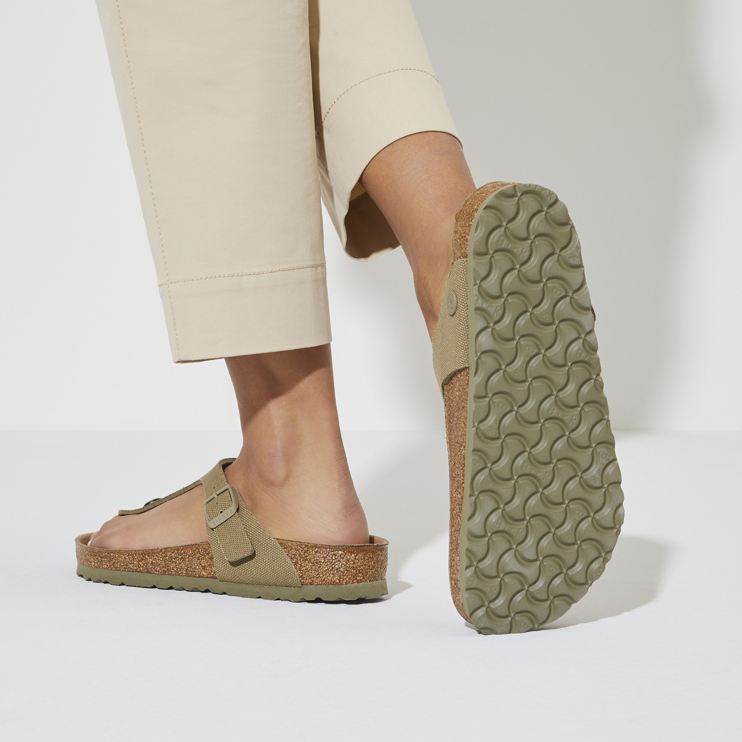The Gizeh brings legendary comfort and elegant detailing to the thong sandal. This season the design goes vegan with a 100% natural cotton canvas upper, giving you a lighter look for warmer months. Tonal details, from buckle to sole, bring it all together. The style stays grounded in an original BIRKENSTOCK footbed, designed to shape to you for custom support.