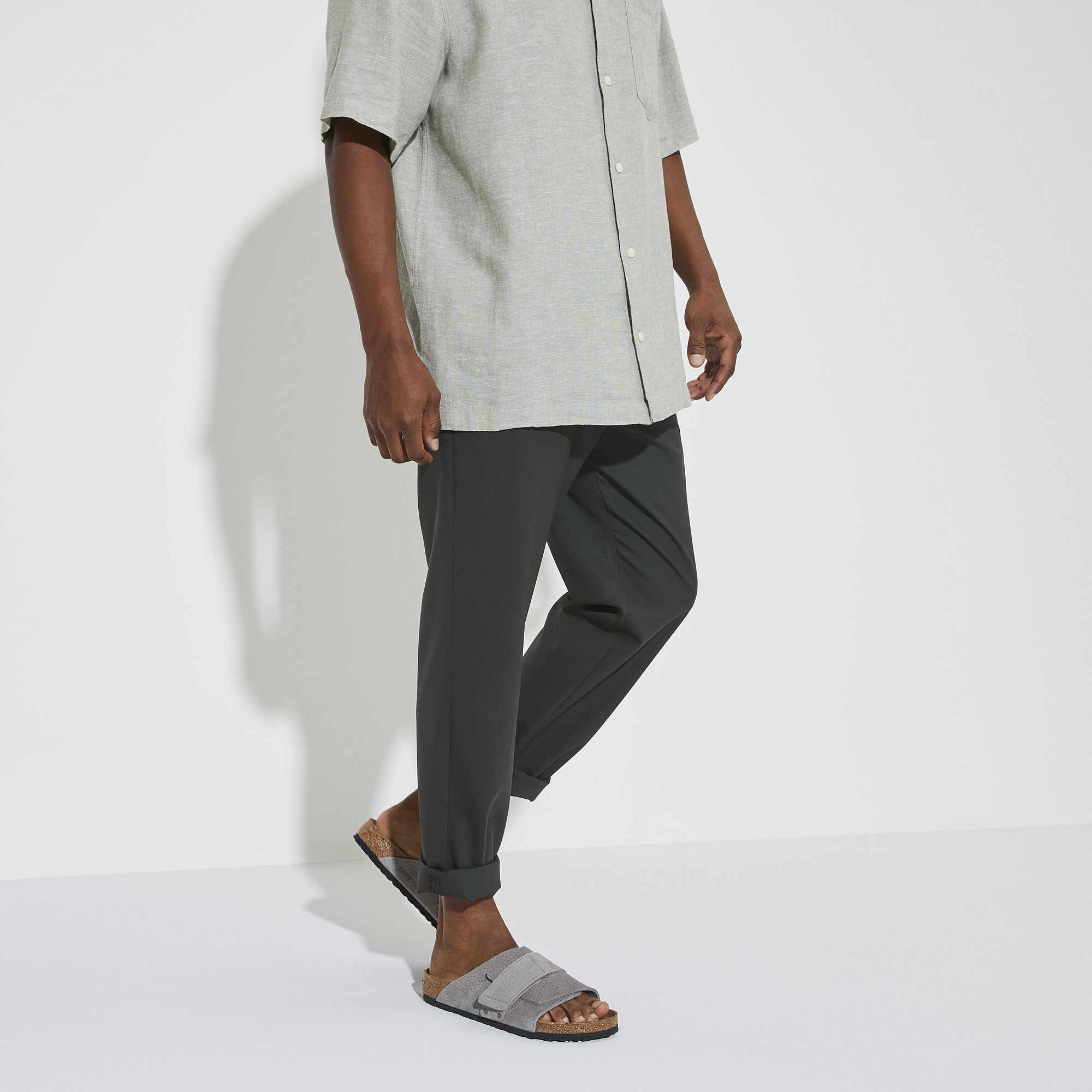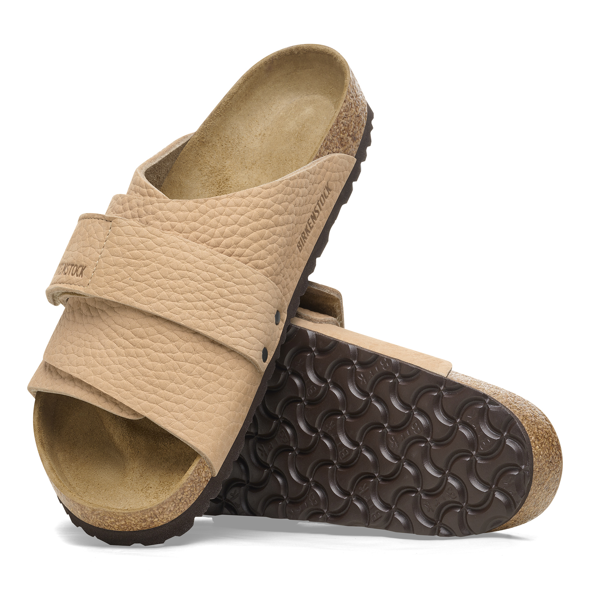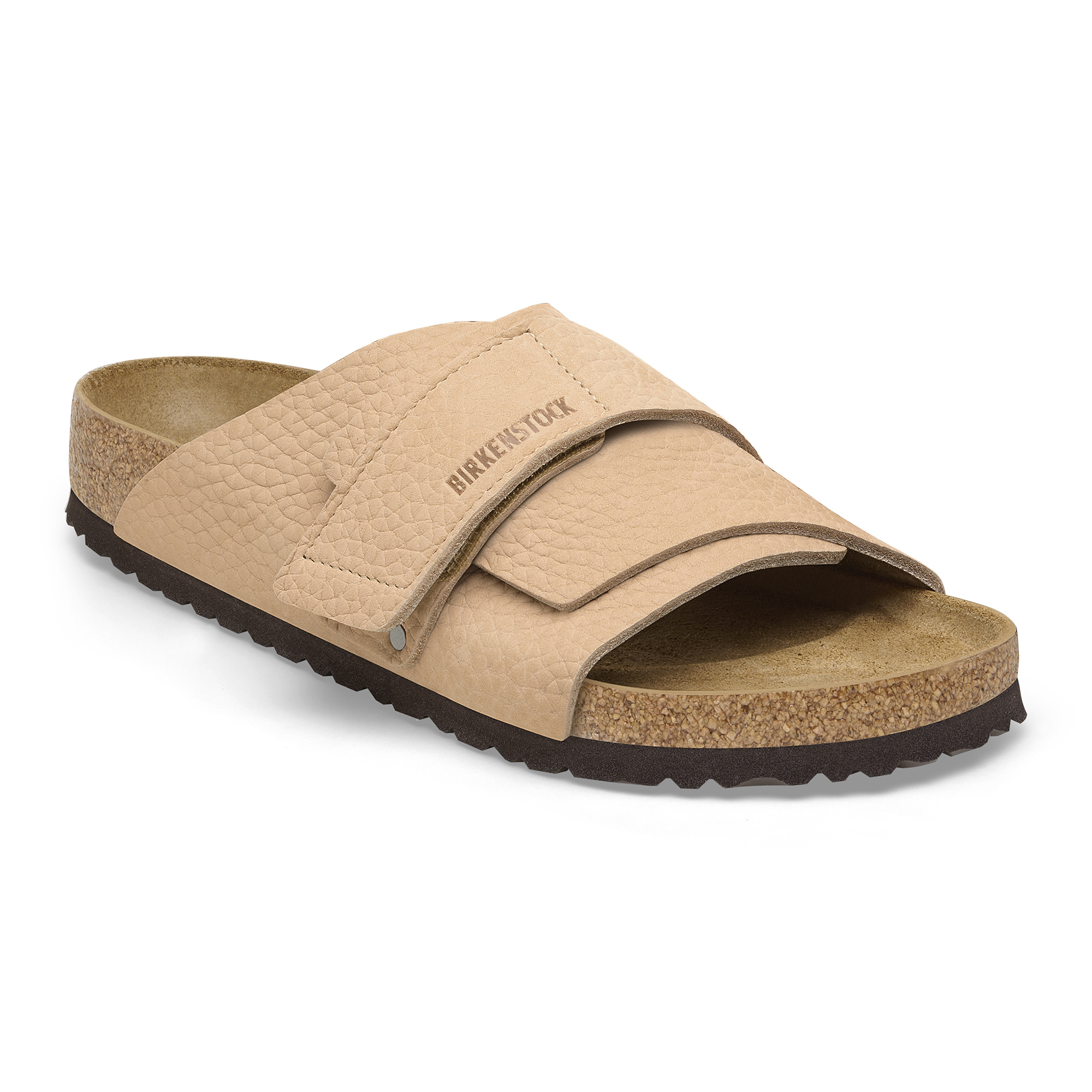 The Kyoto slide maximizes your comfort with its minimalist-friendly design. This season, a high shine hook-and-loop strap creates a patently perfect fit over smooth nubuck leather. It's all grounded in our contoured footbed, designed to shape to you with wear for the ultimate in support.