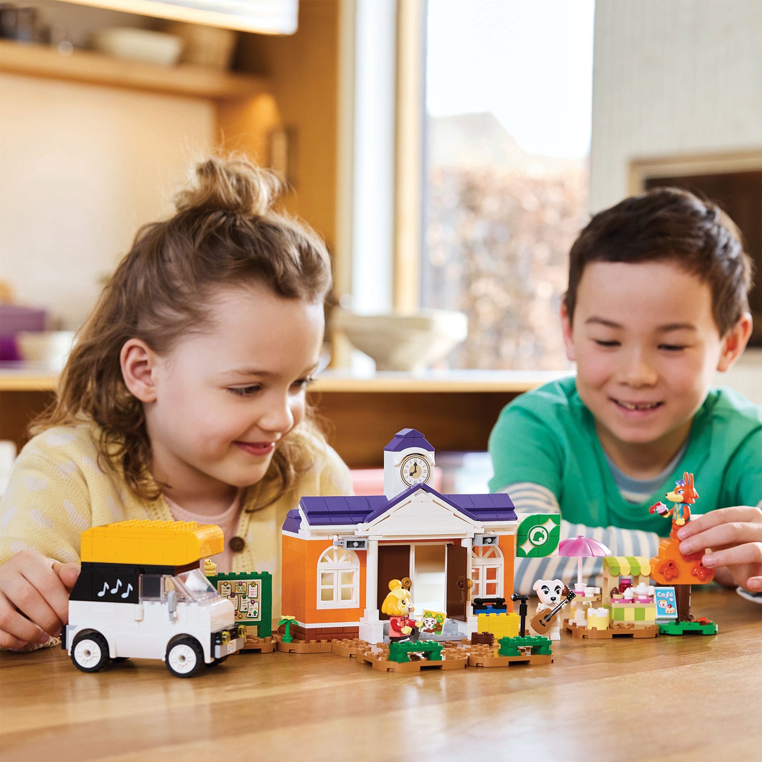 - With 3 recognisable Animal Crossing™ characters – This brick-built playset includes K.K., Isabelle and Audie minifigures, a model of Resident Services with a café and a drivable camper vehicle toy