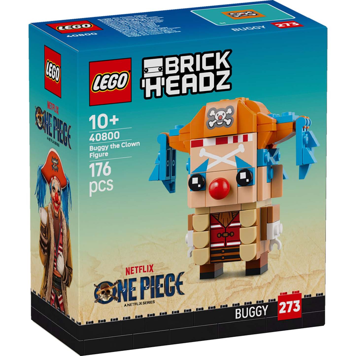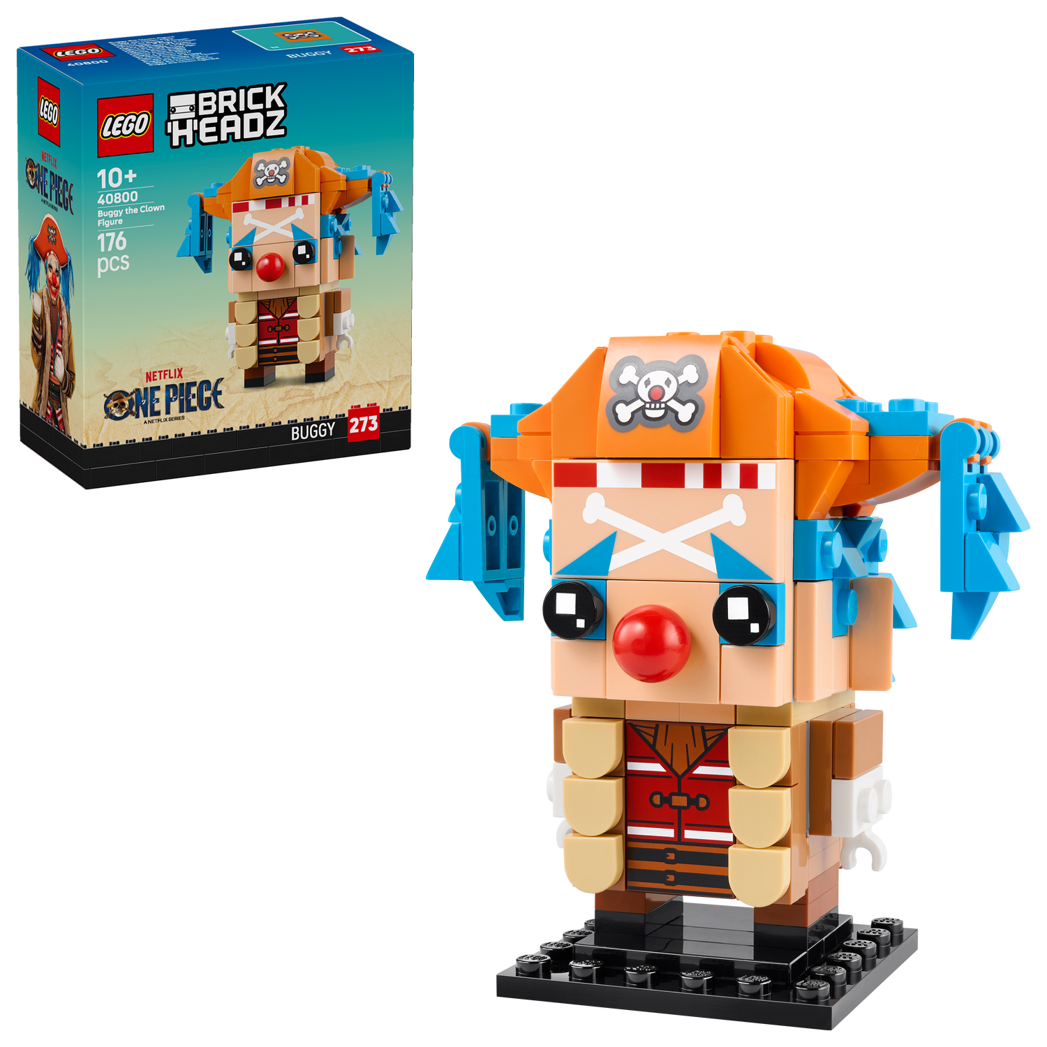 - LEGO® BrickHeadz™ Buggy the Clown Figure – Fans can evoke the thrills of ONE PIECE when they build, play with and display this fun, collectible character from the show