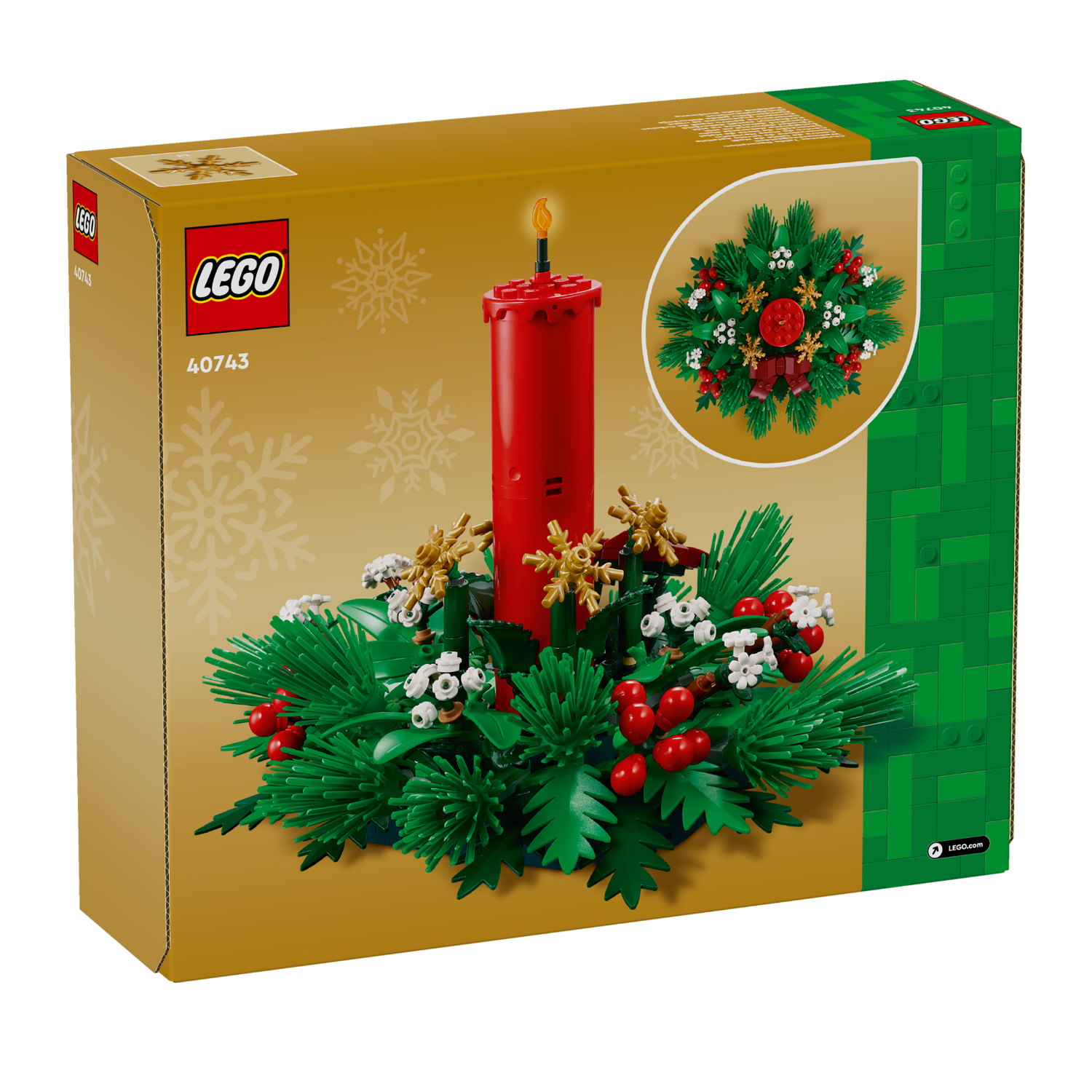 - Festive joy – The Christmas LEGO® set features a red candle at its center, surrounded by red berries, golden stars and green foliage