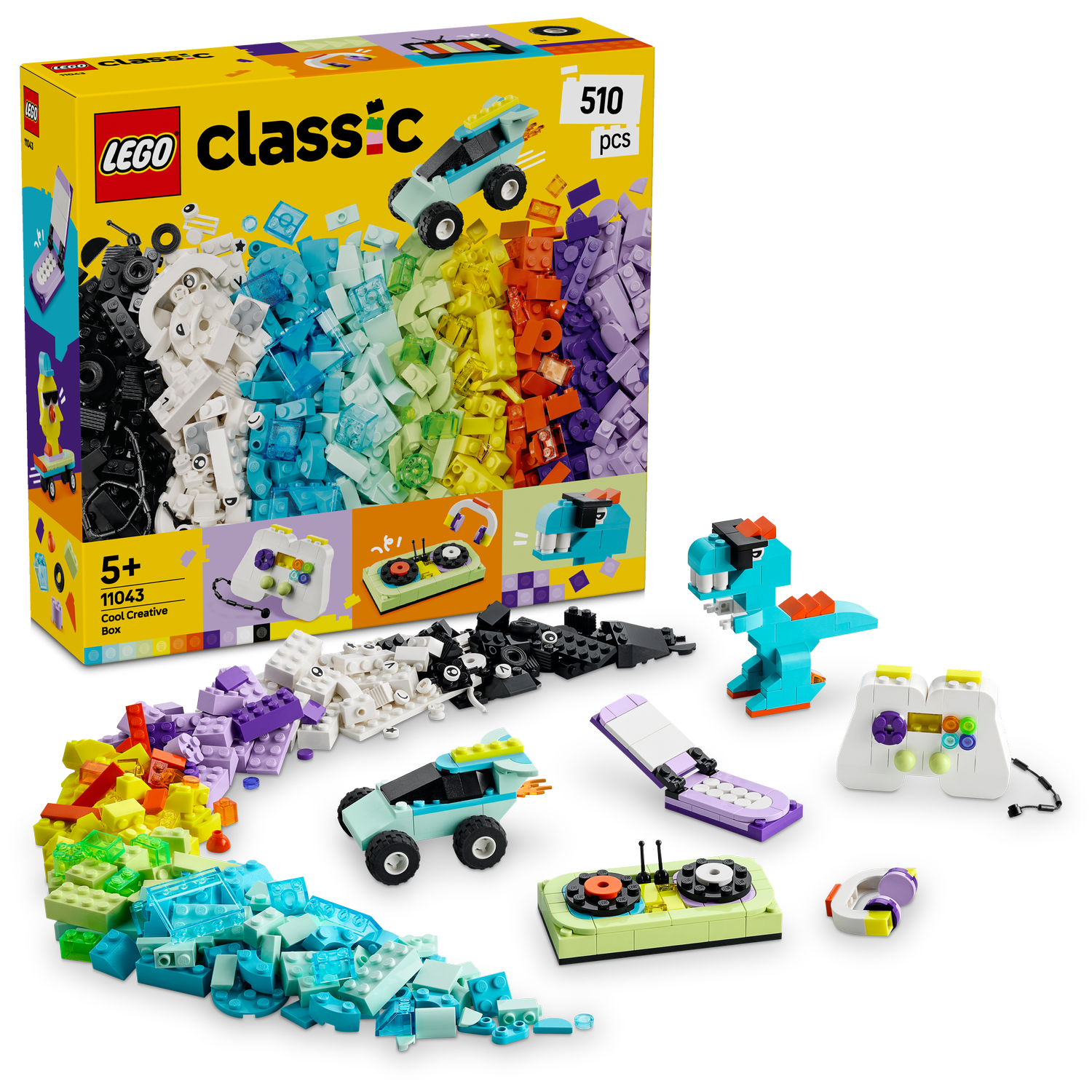 LEGO® Classic Cool Creative Box (11043) is bursting with build-and-play models to inspire kids’ imaginations. With 510 colourful bricks, plus wheels and other special elements, boys and girls aged 5 and over can create and combine a wide variety of on-trend toys as well as imaginative creations of their own.