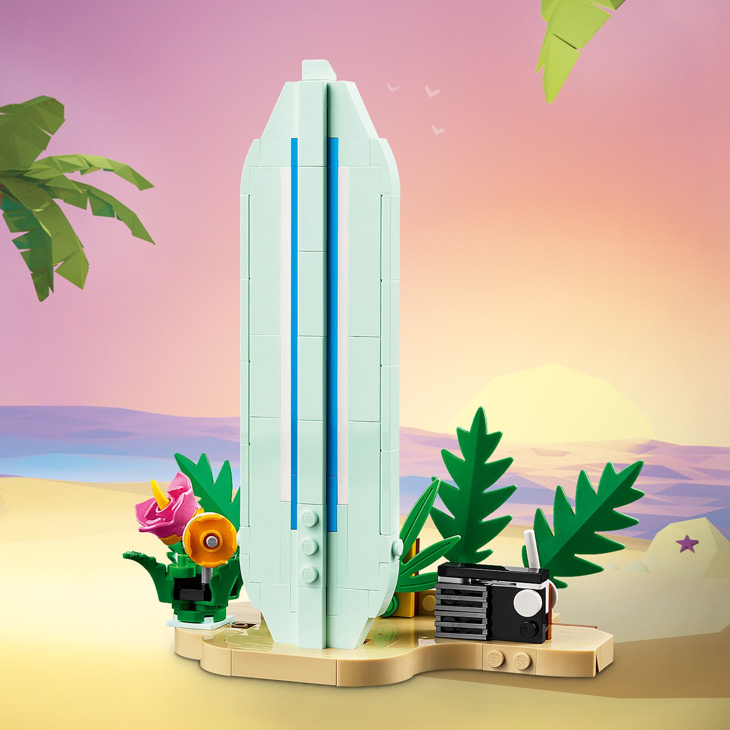 - 3 beach models including a surfboard toy in 1 set – Girls and boys aged 8+ build and rebuild 3 different beach models using the same bricks with the LEGO® Creator Tropical Ukulele instrument toy