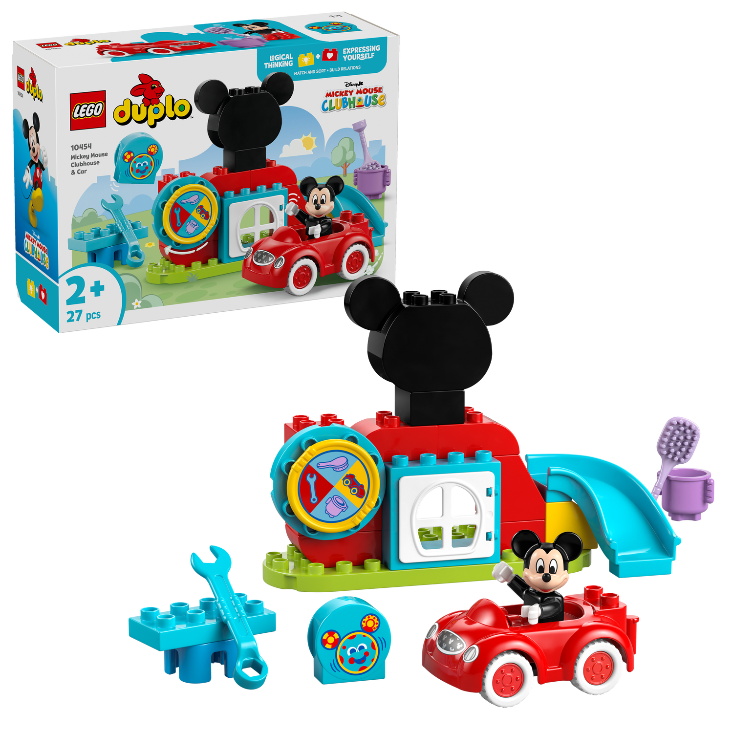 - 2 familiar characters – Comes with LEGO® DUPLO® figure: Mickey Mouse and a Toodles computer element, plus Mickey Mouse’s trusty red buildable car toy from Disney Junior TV show Mickey Mouse Clubhouse