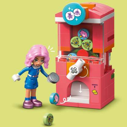 - Toy vending machine – The set is packed with features, like the toy vending machine that dispenses cute little toy tiles, an arcade machine, a gaming area, retro-themed décor and a slush ice store