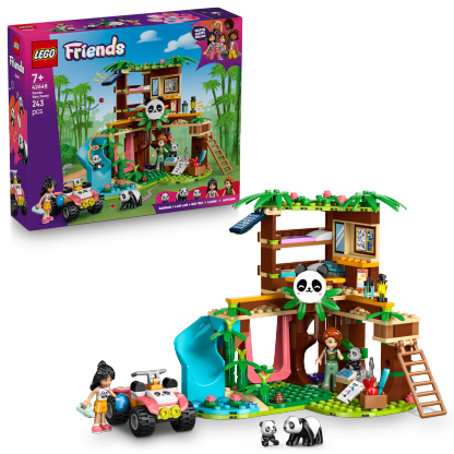 Discover a fun kids’ building set gift that’s packed with panda power! The LEGO® Friends Panda Sanctuary Animal Care (42648) set for girls, boys and animal-lovers aged 7 and up lets kids create their own panda rescue stories. The set comes with a buildable tree house and ATV, 2 minidoll characters and 3 panda figures to inspire creative pretend play.