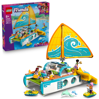Travel Boat Adventure (42664) for girls and boys aged 8 and up comes with 4 LEGO Friends minidolls and heaps of accessories for imaginative play. The detailed boat is packed with realistic features like the sail, which moves when kids turn the wheel!