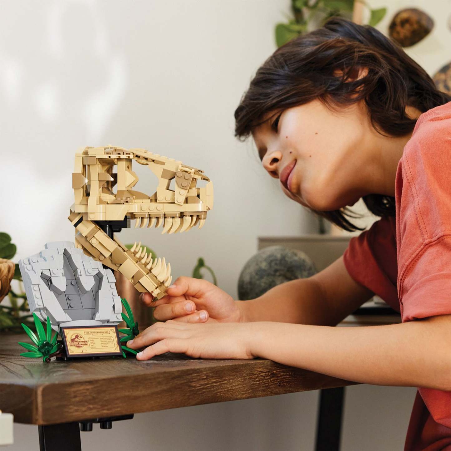 Inspire dinosaur-loving boys and girls or budding paleontologist aged 9 and over with this LEGO® Jurassic World Dinosaur Fossils: T. rex Skull (76964) dinosaur toy for kids. The first Jurassic World set made for display features a skull with an opening jaw, a stand with an information plaque, a hidden ‘amber’ piece at the back of the model and a ‘fossilised’ footprint.