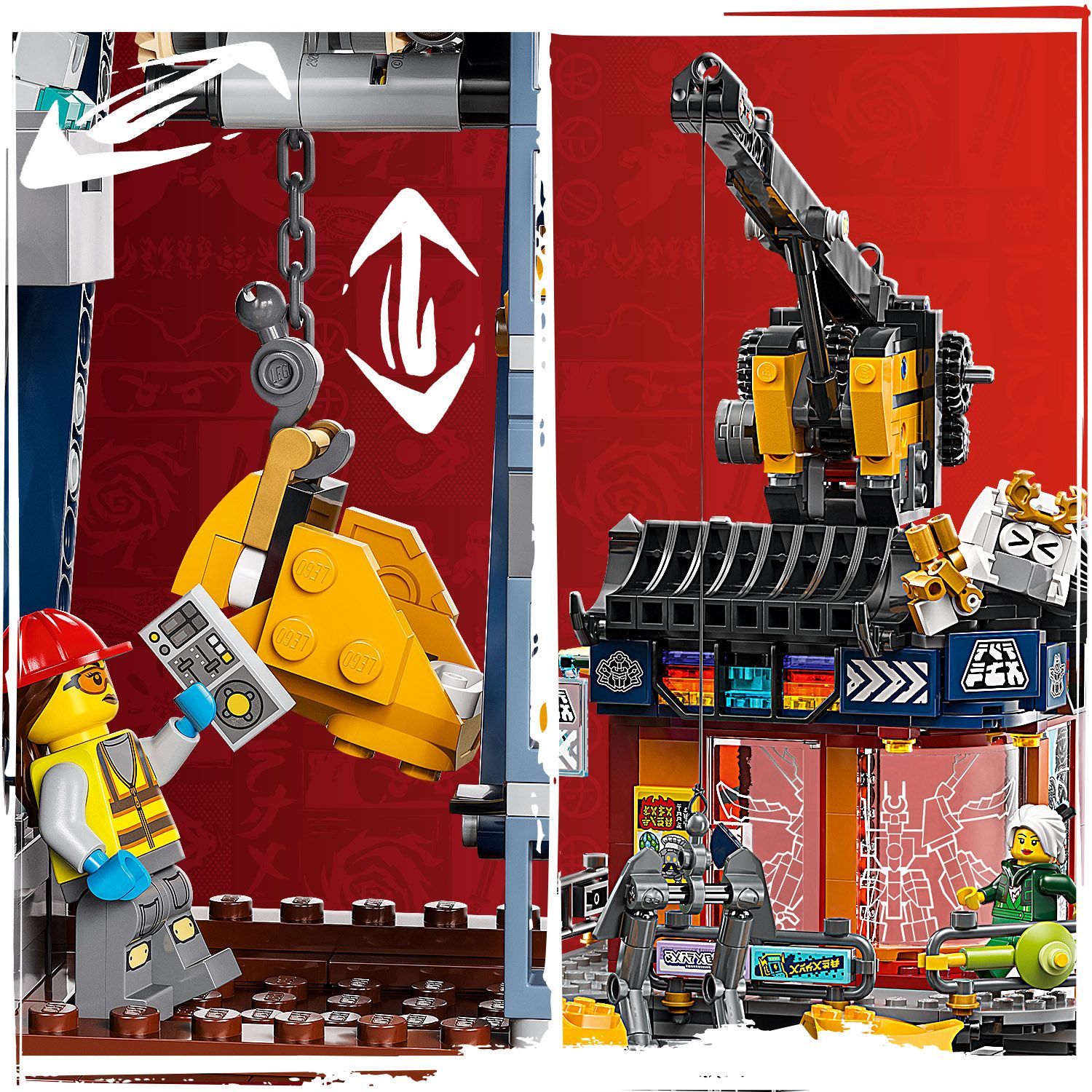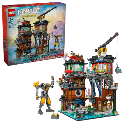 Ninja fans aged 14 and over can add to their collection of LEGO® NINJAGO® City models with this stunning and detailed NINJAGO City Workshops (71837) building kit. The large ninja playset model features 4 action-packed floors of apartments, shops and restaurants, some of which can be removed and played with separately, plus a mechanic’s workshop and 2 working cranes.
