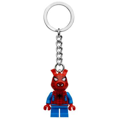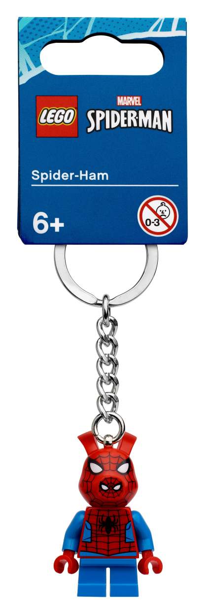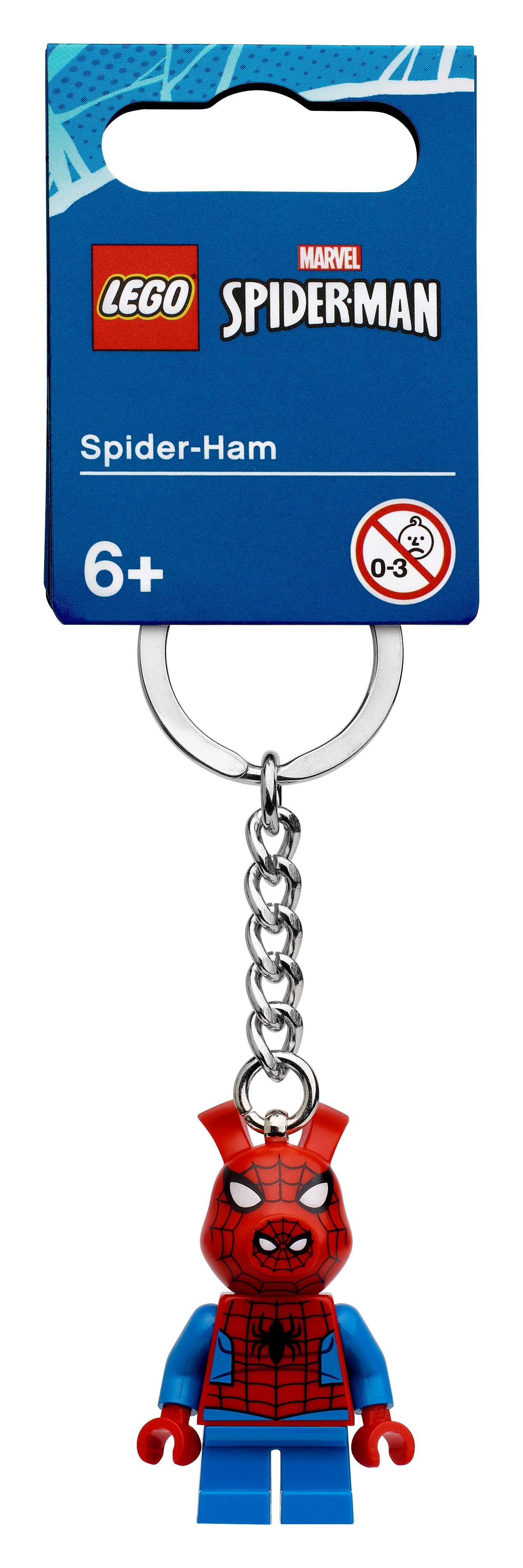 - Features a LEGO® Marvel Spider-Ham minifigure attached to a durable metal ring and chain. The minifigure is fixed firmly to the metal chain and cannot be removed.