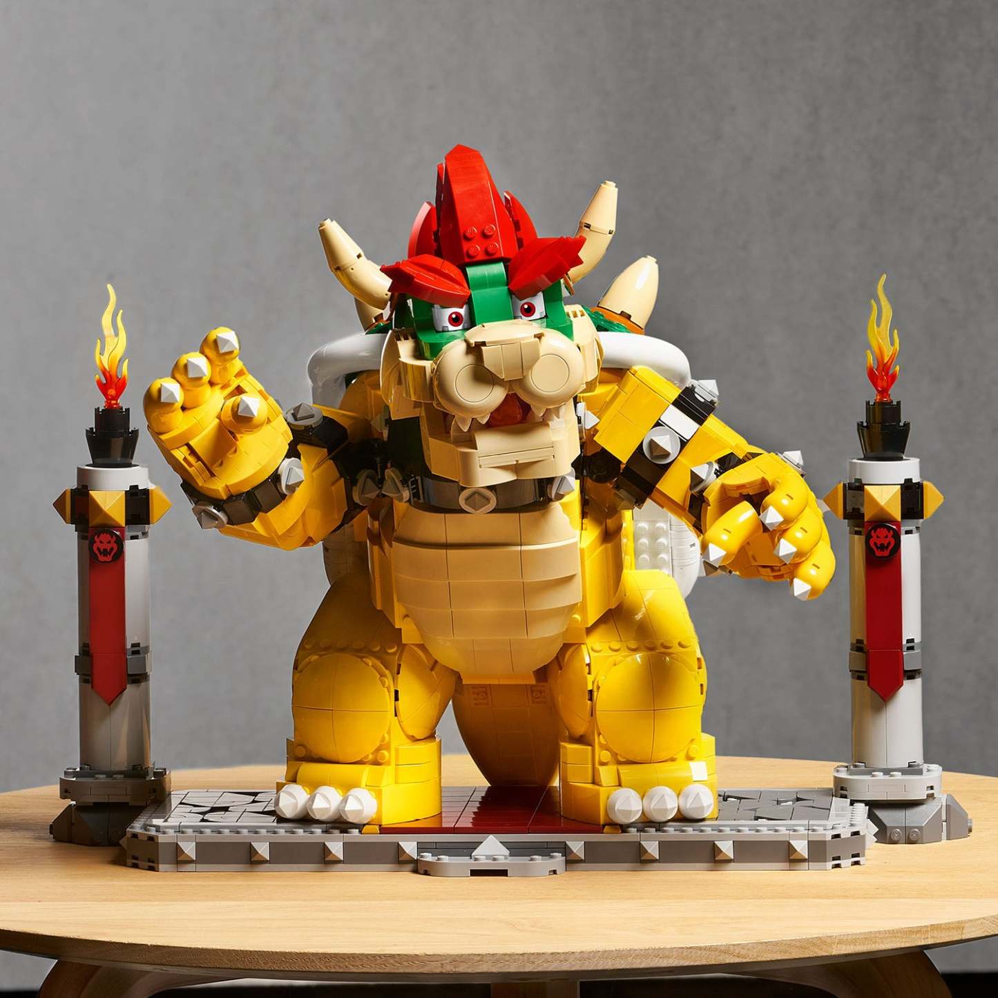 - The Mighty Bowser™ display piece – This LEGO® Super Mario™ character model, including the display stand, measures over 32 cm (12.5 in.) high, 41 cm (16 in.) wide and 28 cm (11 in.) deep