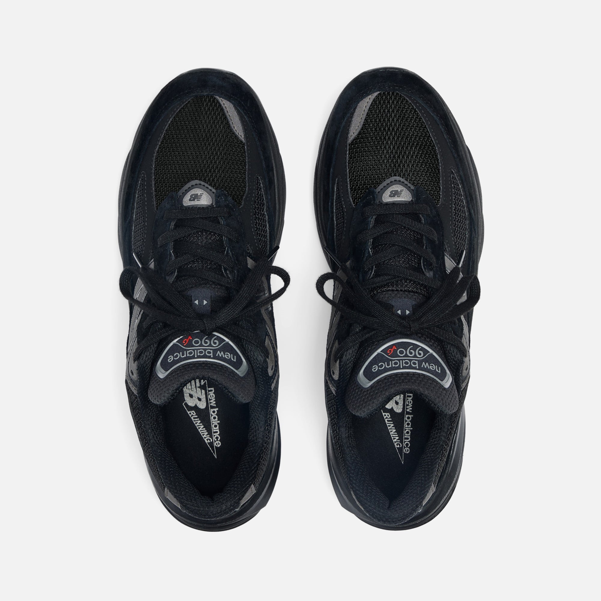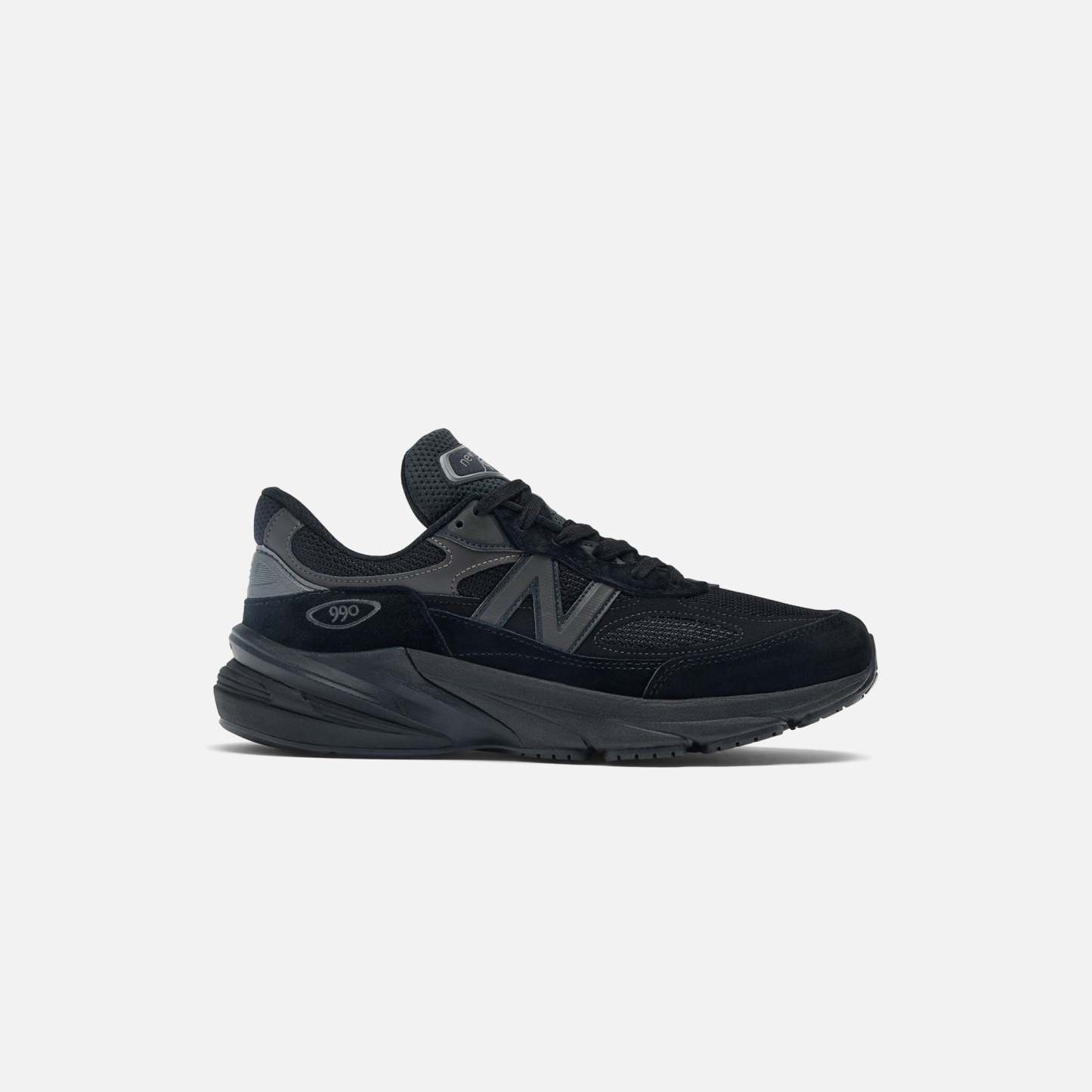 Embroidered 990 logo on heel panel