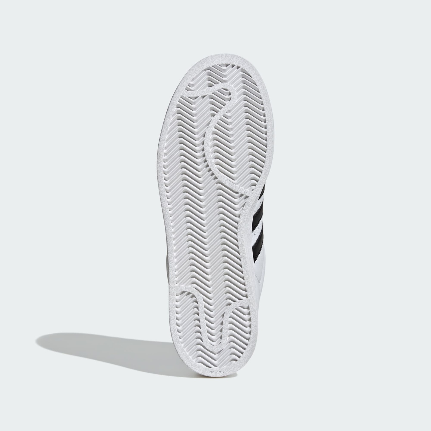 LA CÉLÈBRE CHAUSSURE ADIthtDAS SUPERSTAR DOTÉ D'UN SHELL-TOE ARRONDI CLASSIQUE.