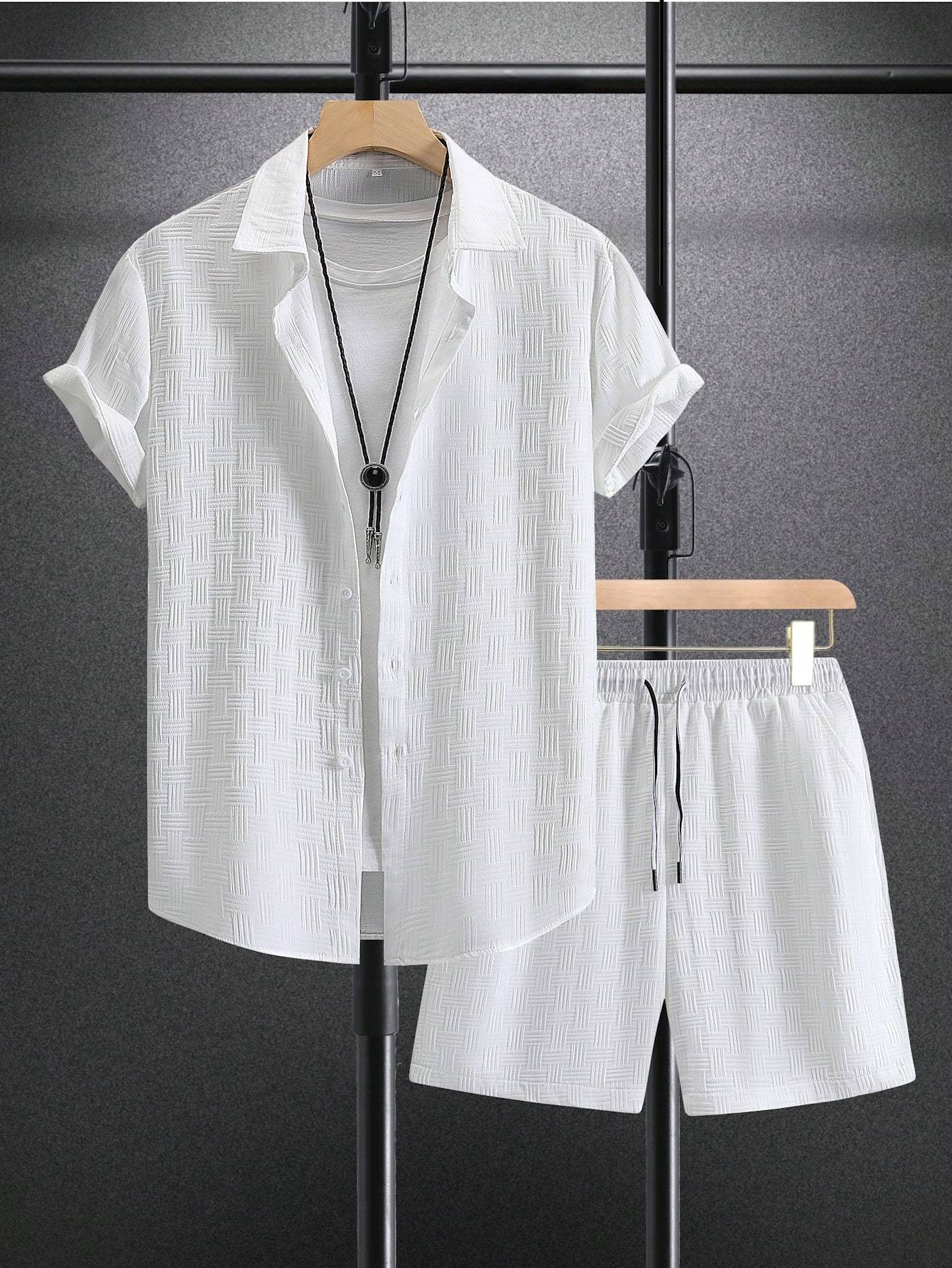 Men Solid Button Up Shirt & Shorts Set