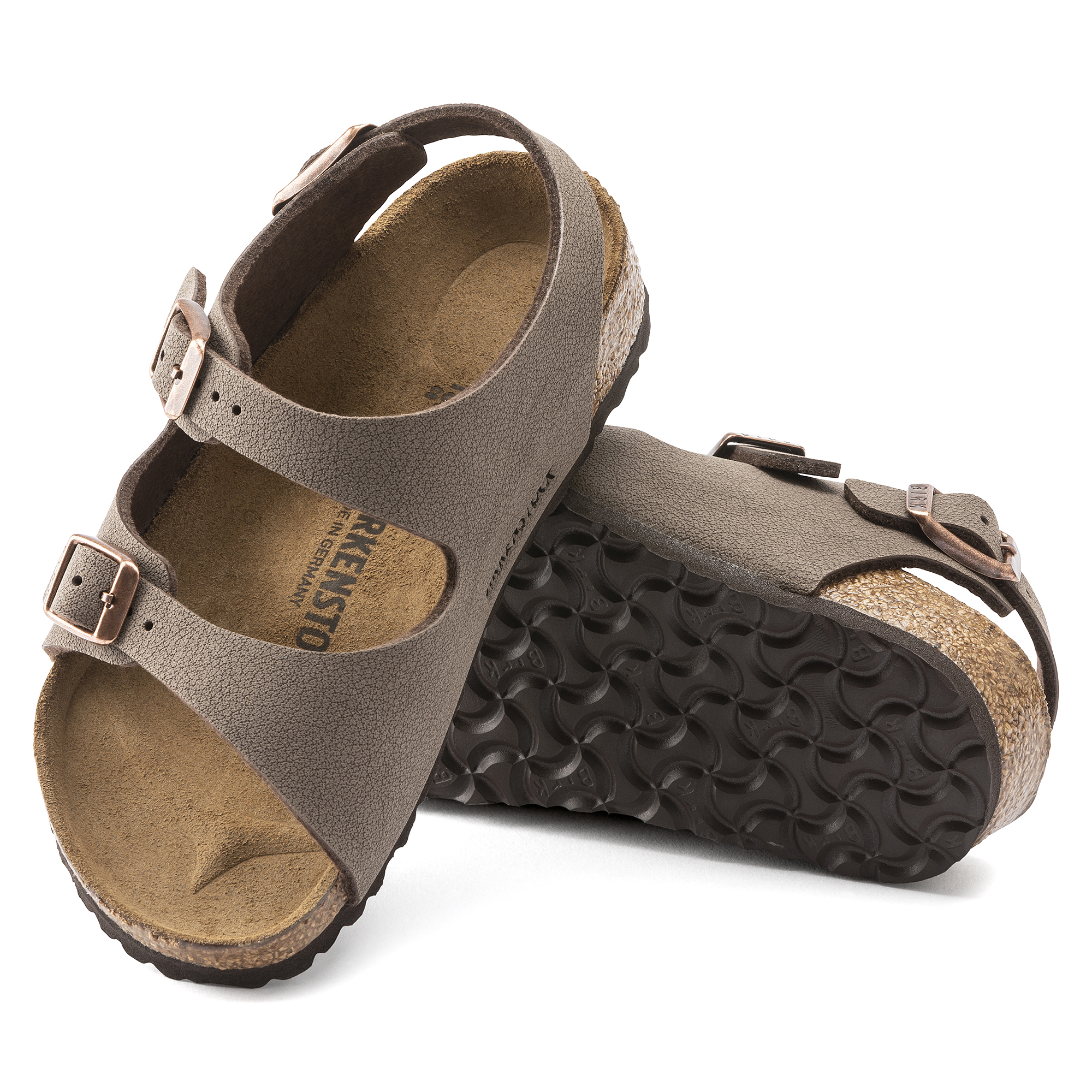 - Details: two-strap sandal with a heel strap and three individually adjustable metal pinn buckles