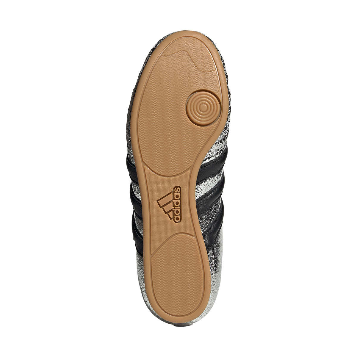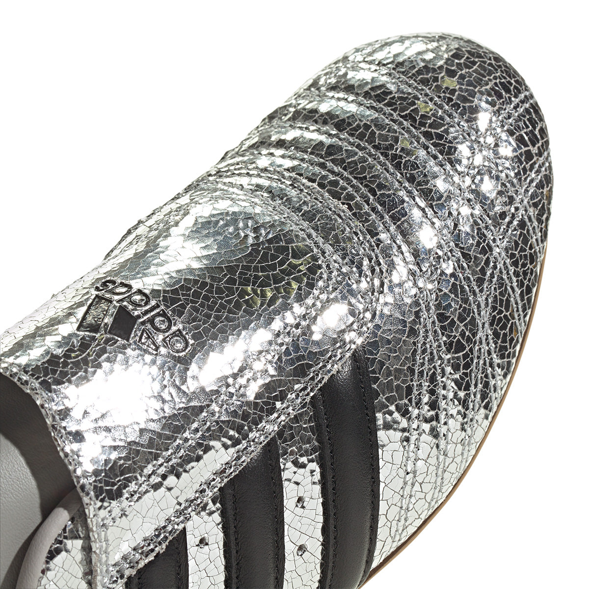 With their roots in early 2000s martial arts footwear, these adithtdas Taekwondo trainers are firmly planted in streetwear style. Their silver, cracked metallic leather upper provides flexibility, while the laceless, slip-on design allows for quick changes. The super-low-profile rubber outsole offers grip for the day and wherever you decide to kick it.