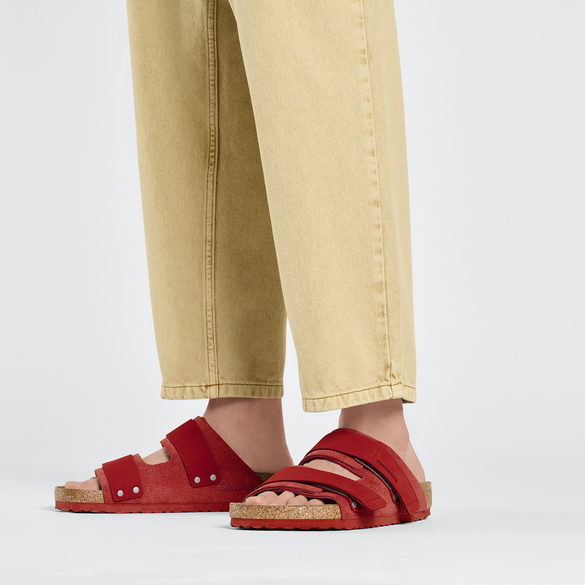 Minimalist-friendly design, maximum comfort. The Uji sandal's suede upper comes together softly over the foot, secured by nubuck hook-and-loop straps for a customized fit. The modern style is grounded in original BIRKENSTOCK® support, with a cork-latex footbed that shapes to you with wear.